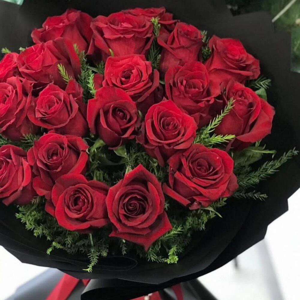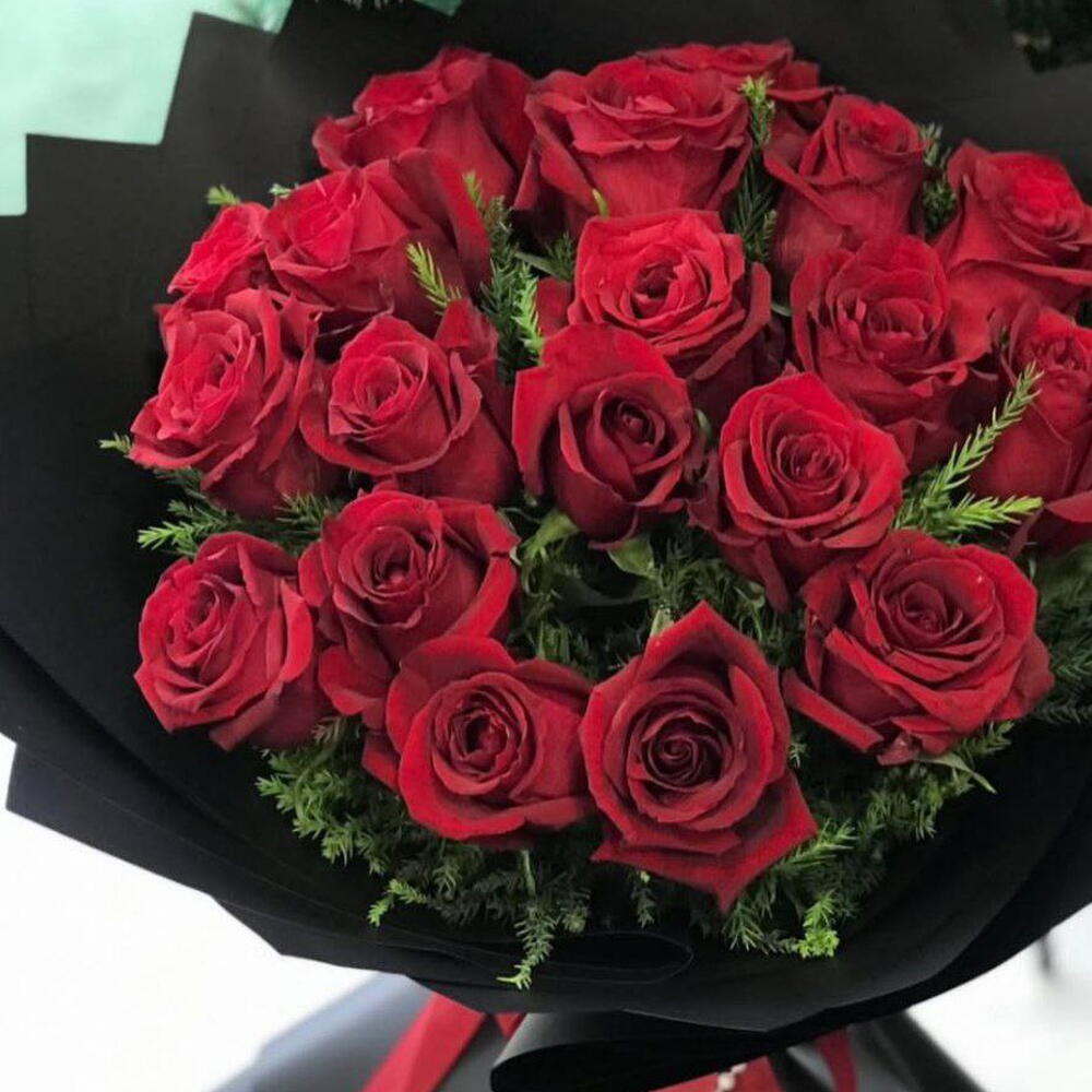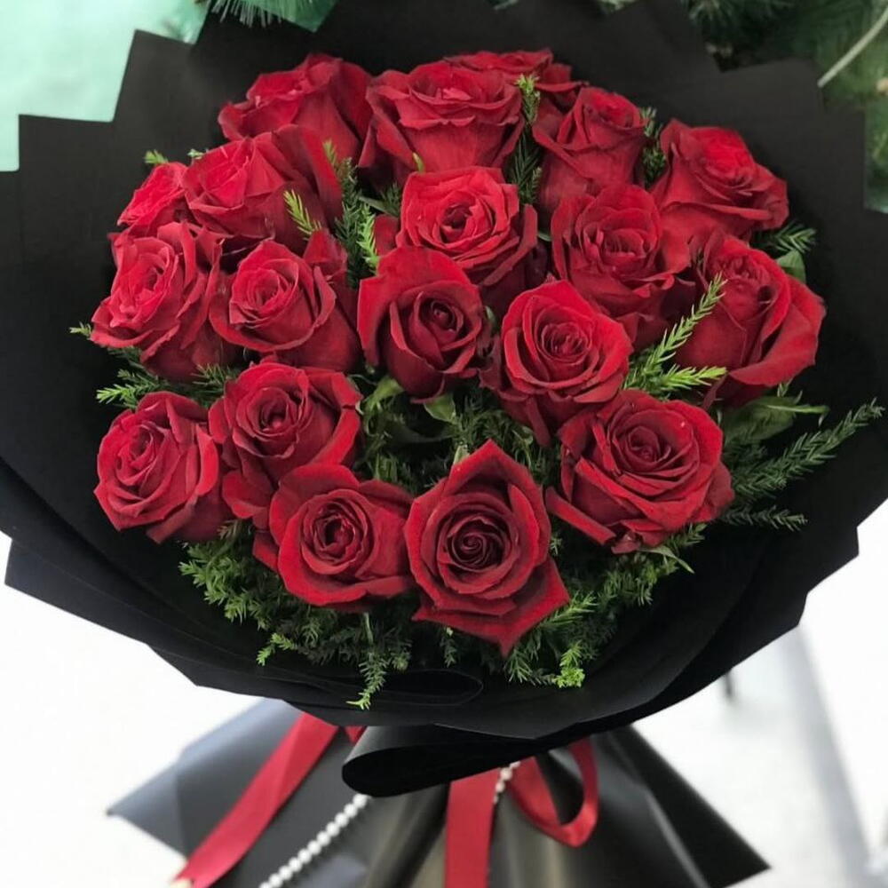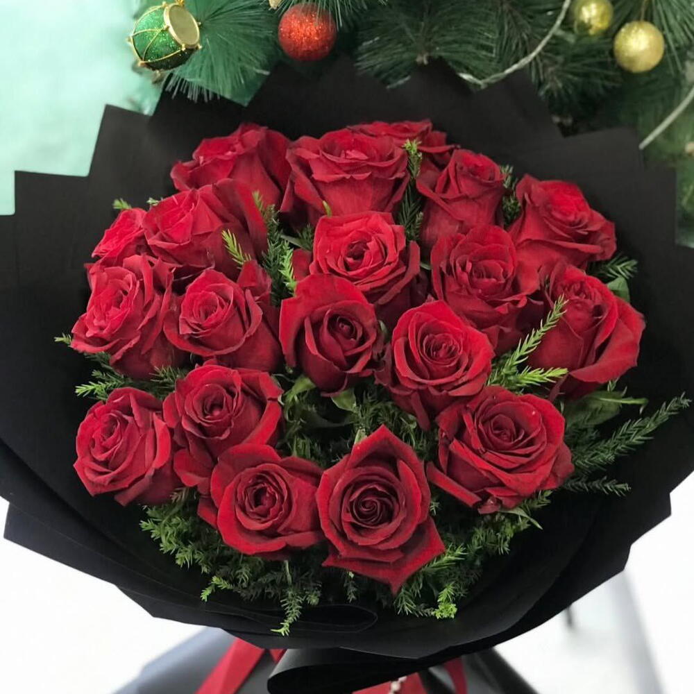 Роза - 19 шт. Атласная лента - 1 шт. Упаковка дизайнерская - 1 шт. Открыточка с вашими пожеланиями - 1 шт. новогоднее настроение - 100500 шт. быстрая доставка - 100 шт. нобилис пачка - 1 шт.