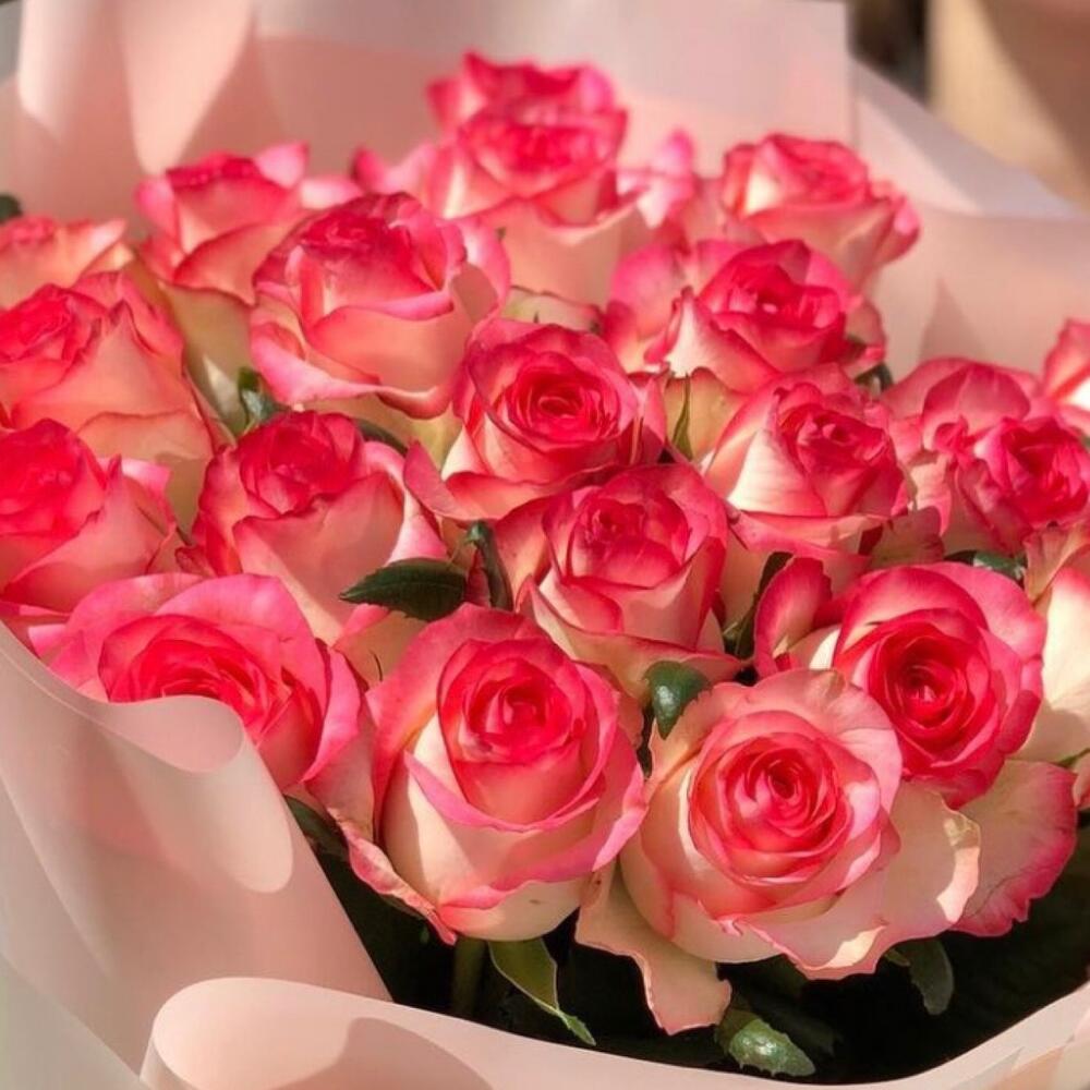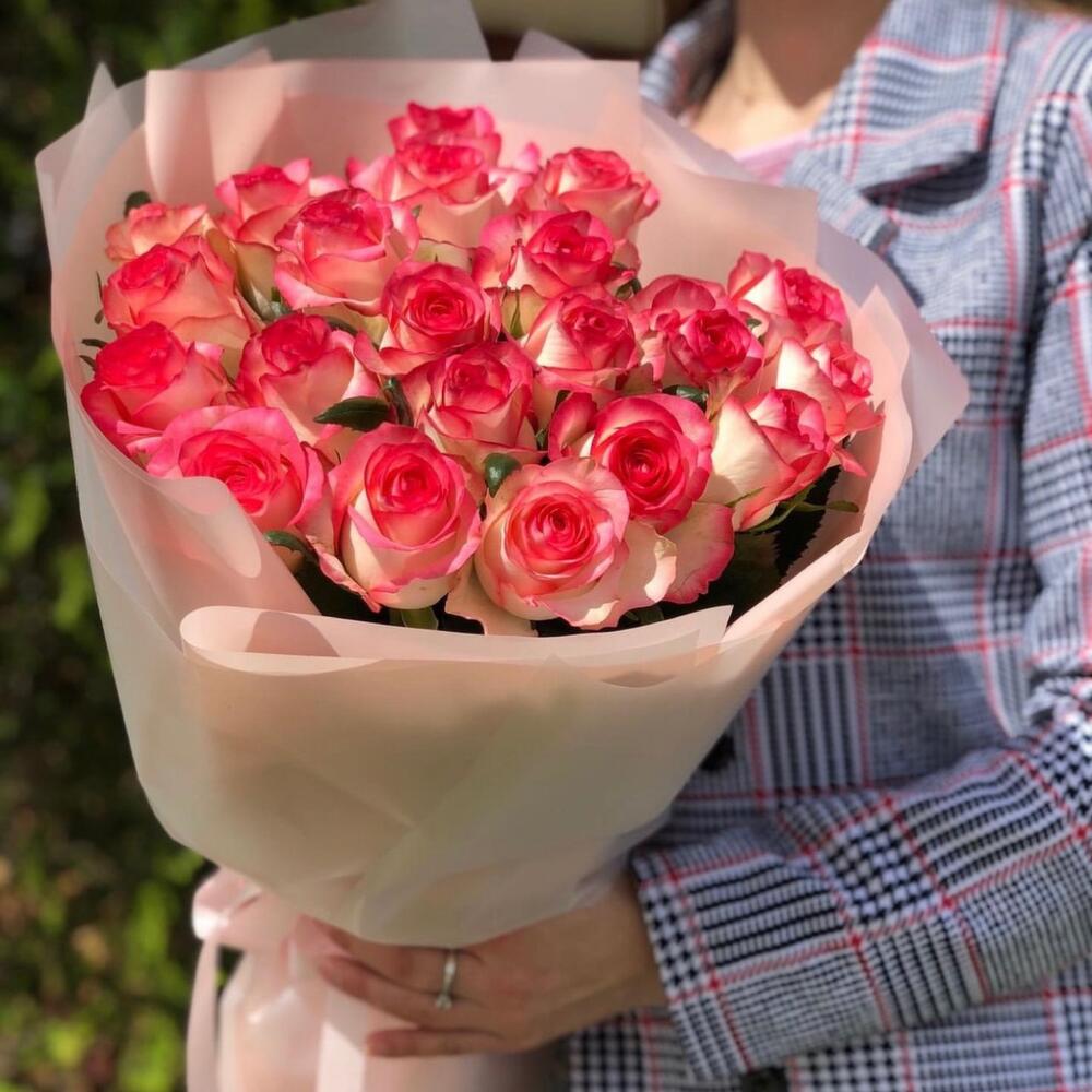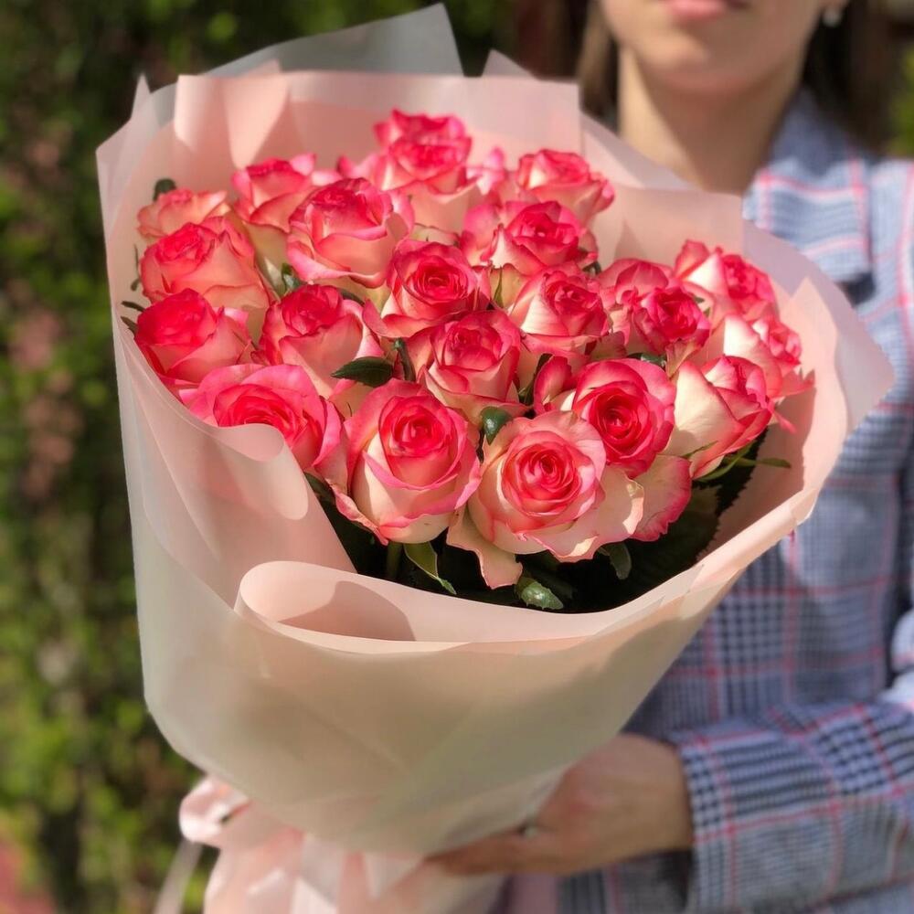 Лента атласная - 1 шт. Упаковка дизайнерская - 4 шт. Роза Джумилия - 21 шт.