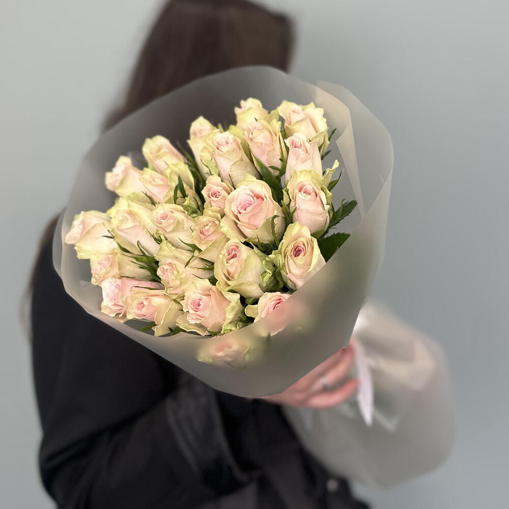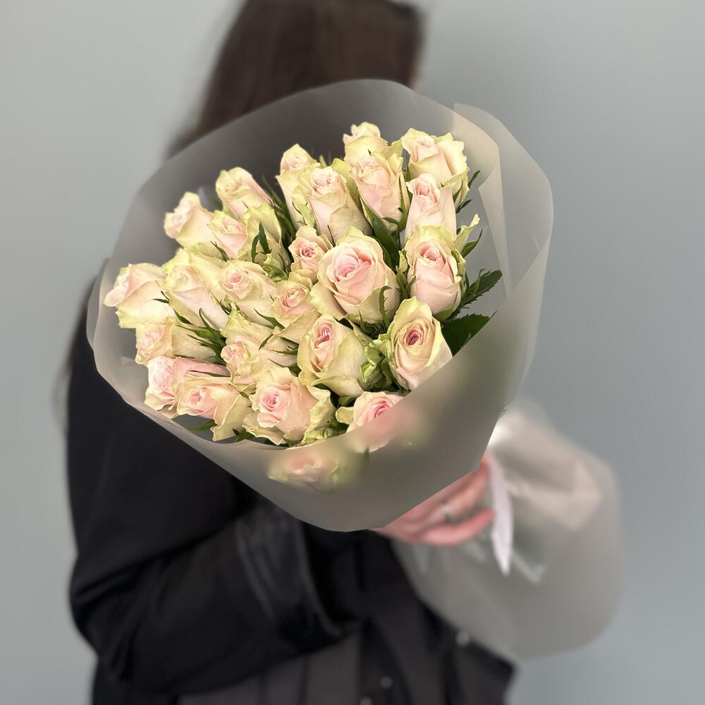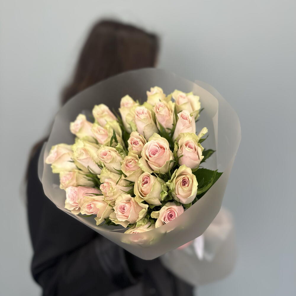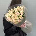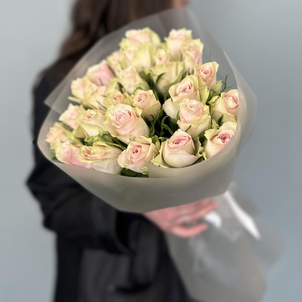 Элегантный букет из утончённых роз в кремово-розовой гамме — идеальный способ сказать о чувствах без лишних слов. Нежные бутоны словно наполнены теплом, лёгкостью и романтикой. Такой букет подойдёт для свидания, дня рождения, годовщины или просто чтобы порадовать любимого человека.