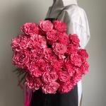 Описание : Сорт Кантри Блюз — невероятно эффектная розовая роза, напоминающая пионы. Ее лепестки Закручены и напоминают форму сердца. Выглядит она по-настоящему завораживающе, никого не оставляя равнодушным. Сорт достаточно стойкий, поэтому будет долго радовать получателя. Подарки к каждому букету: -Открытка -Фирменная шоколадка -Транспортировочная упаковка -Подкормка -Инструкция по уходу А также фото букета перед доставкой.