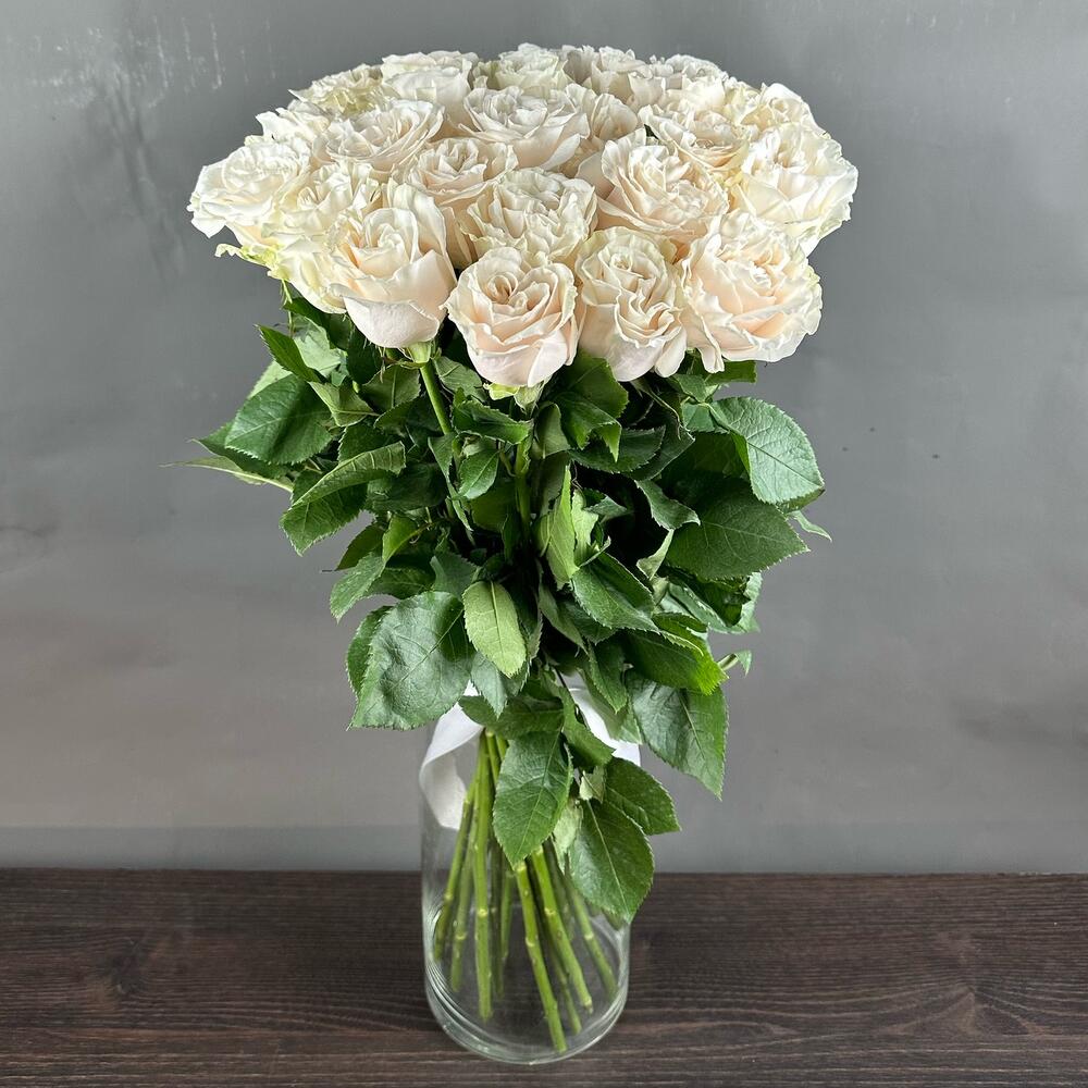 Лента атласная - 1 шт. Роза пионовидная эквадор - 25 шт.