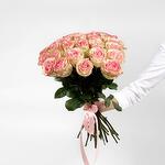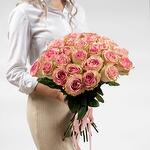 Лента атласная розовая - 2 шт. Роза эквадор 50 см - 25 шт.