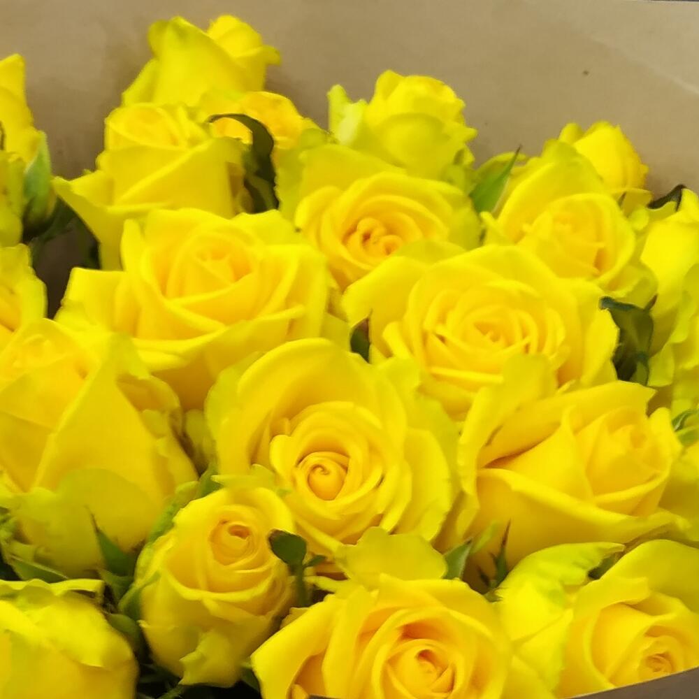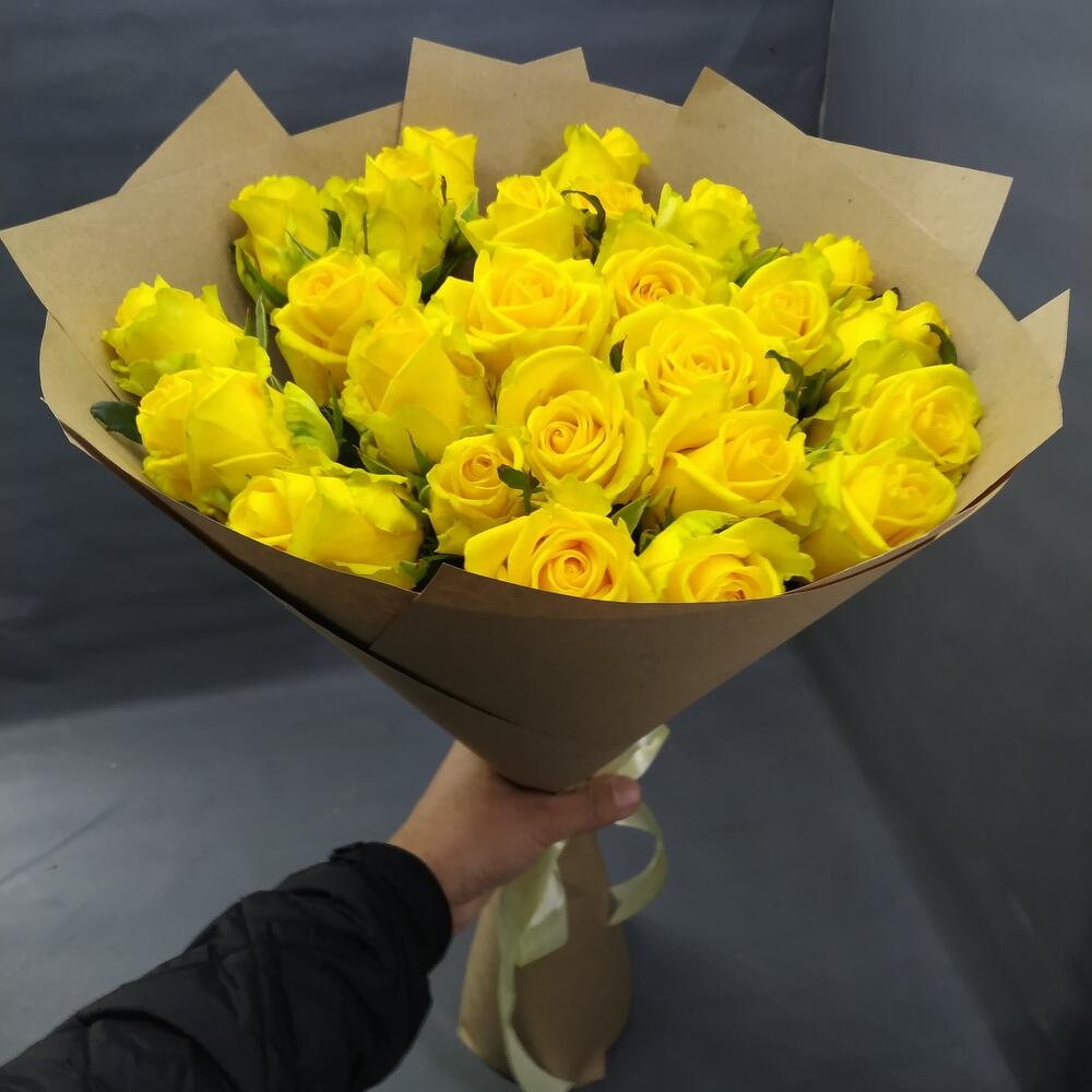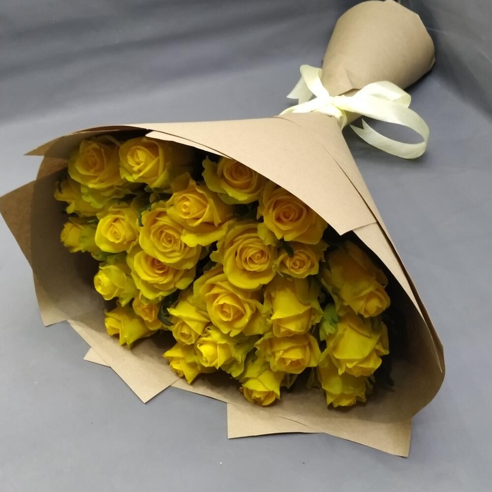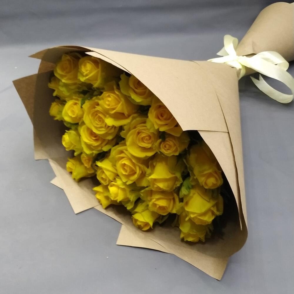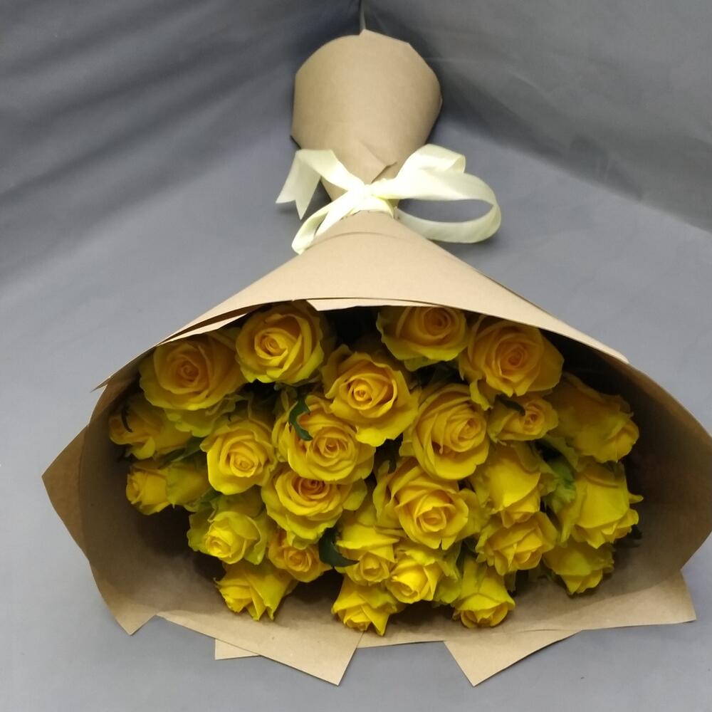 Лента - 1 шт. Крафт упаковка - 4 шт. Желтая роза - 25 шт.