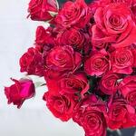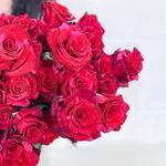 Роза красная - 33 шт. Лента атласная - 1 шт. Открыточка с вашими пожеланиями - 1 шт. хорошее настроение - 100 шт.