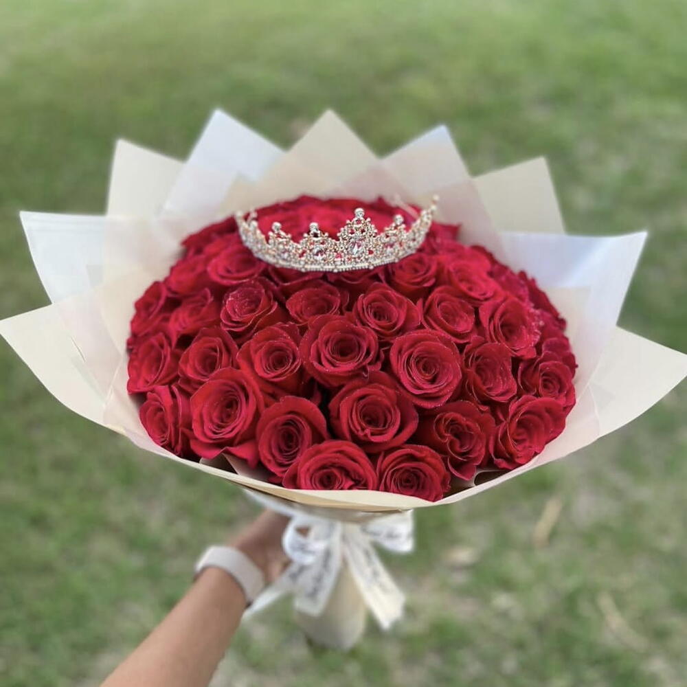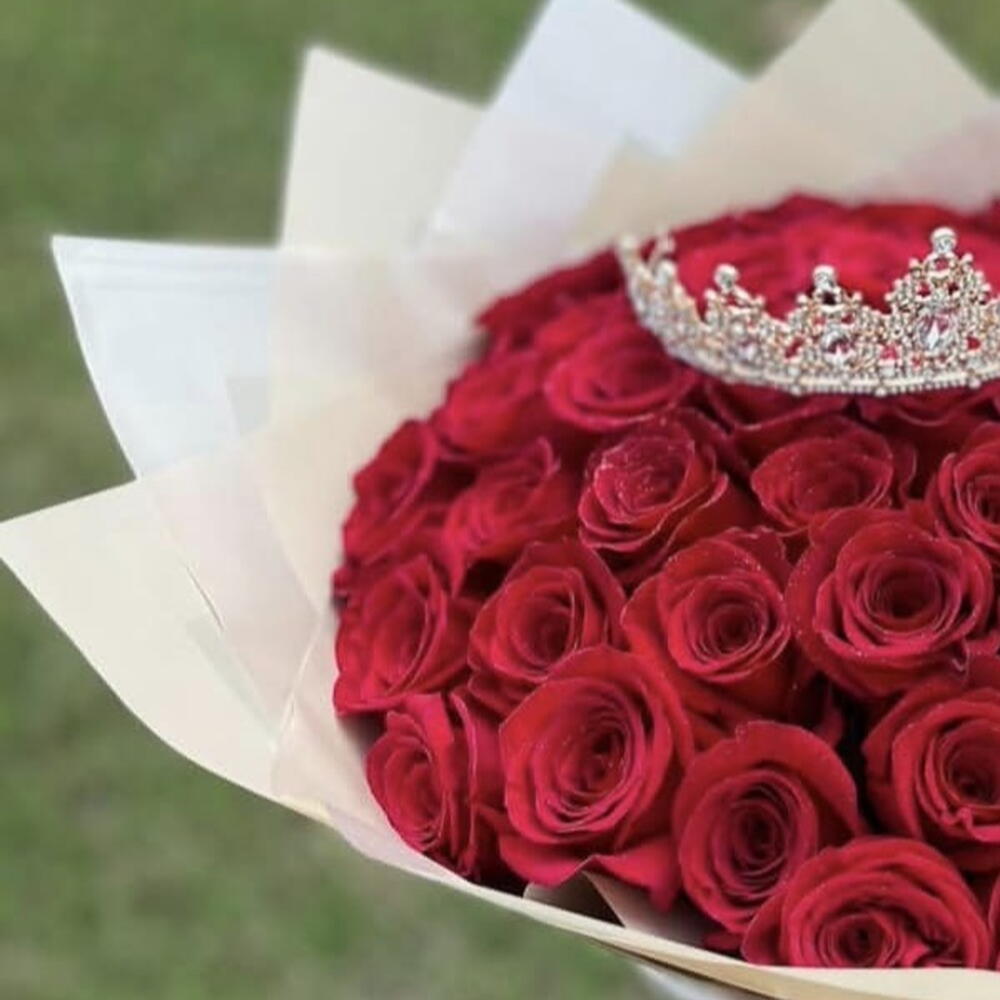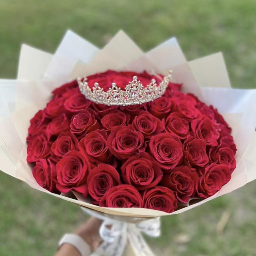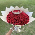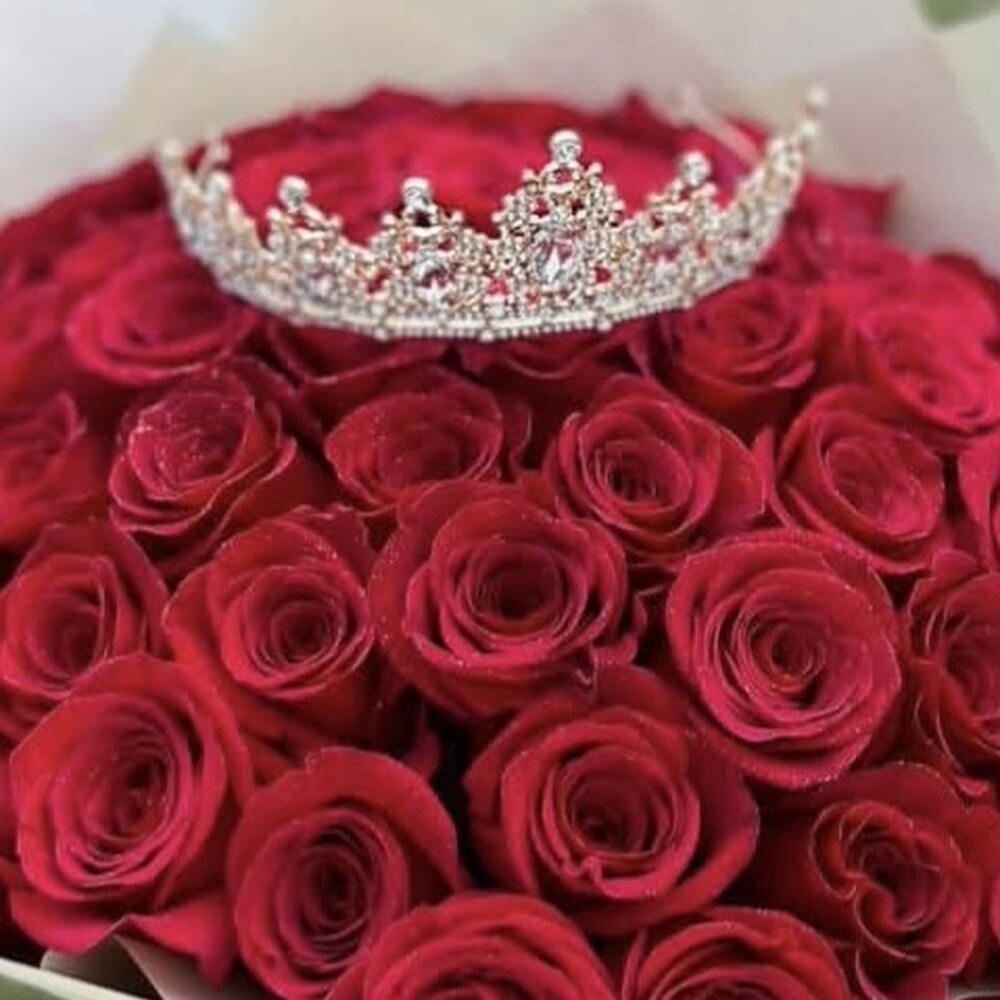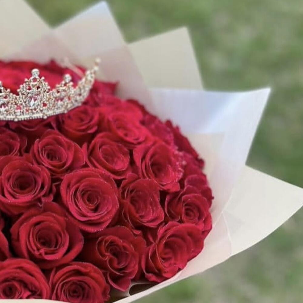 Роза - 51 шт. Лента атласная - 1 шт. Упаковка дизайнерская - 1 шт. Открыточка с вашими пожеланиями - 1 шт. корона декор - 1 шт. море положительных эмоций))) - 1000 шт.