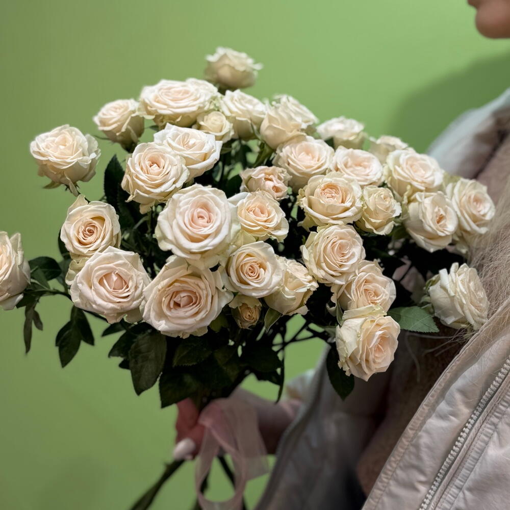 Кустовая роза - 5 шт. Атласная лента - 2 шт.