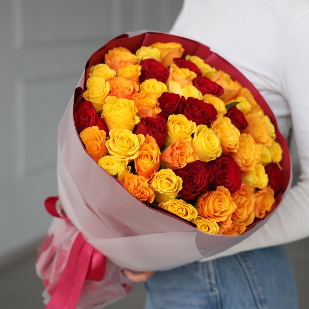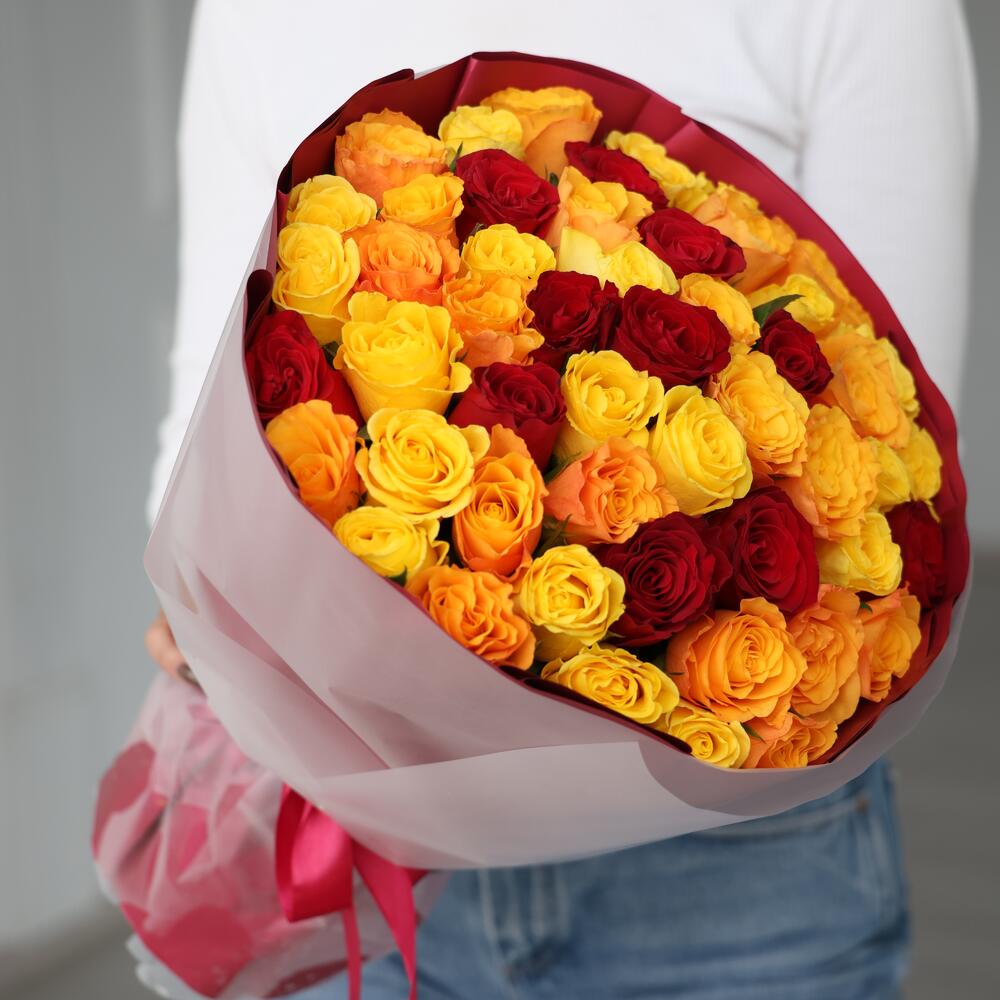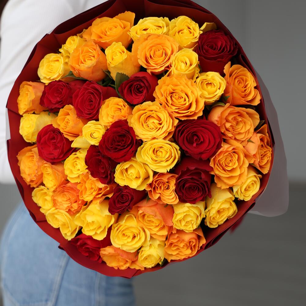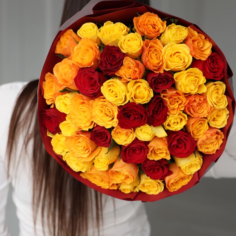 Яркий букет микс из кенийских роз в стильной упаковке. Размер букета: Ширина 40 см Высота 40 см Чтобы цветы долго радовали своей красотой и свежестью, подрежьте розы и поставьте в холодную воду. Вазу надо поставить вдалеке от прямых солнечных лучей, сквозняков и отопительных приборов. Подрезать цветы и менять воду необходимо каждый день. Дарите цветы с удовольствием! И они принесут улыбку🥰