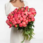 Композиционный букет из 51 пиона Голландия 😍 с атласной лентой ☺️🎀