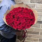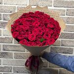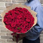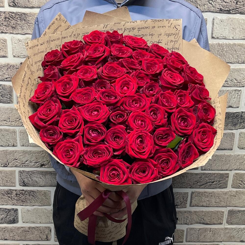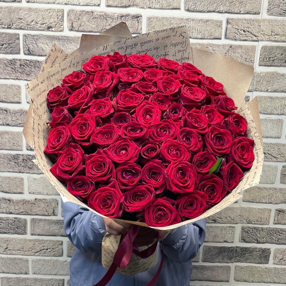 Лента атласная - 2 шт. Открыточка с вашими пожеланиями - 1 шт. крафт с надписью - 3 шт. роза red naomi. - 51 шт.