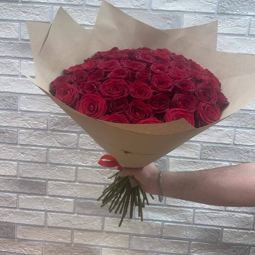 Крафт упаковка - 1 шт. роза реднаоме - 51 шт.