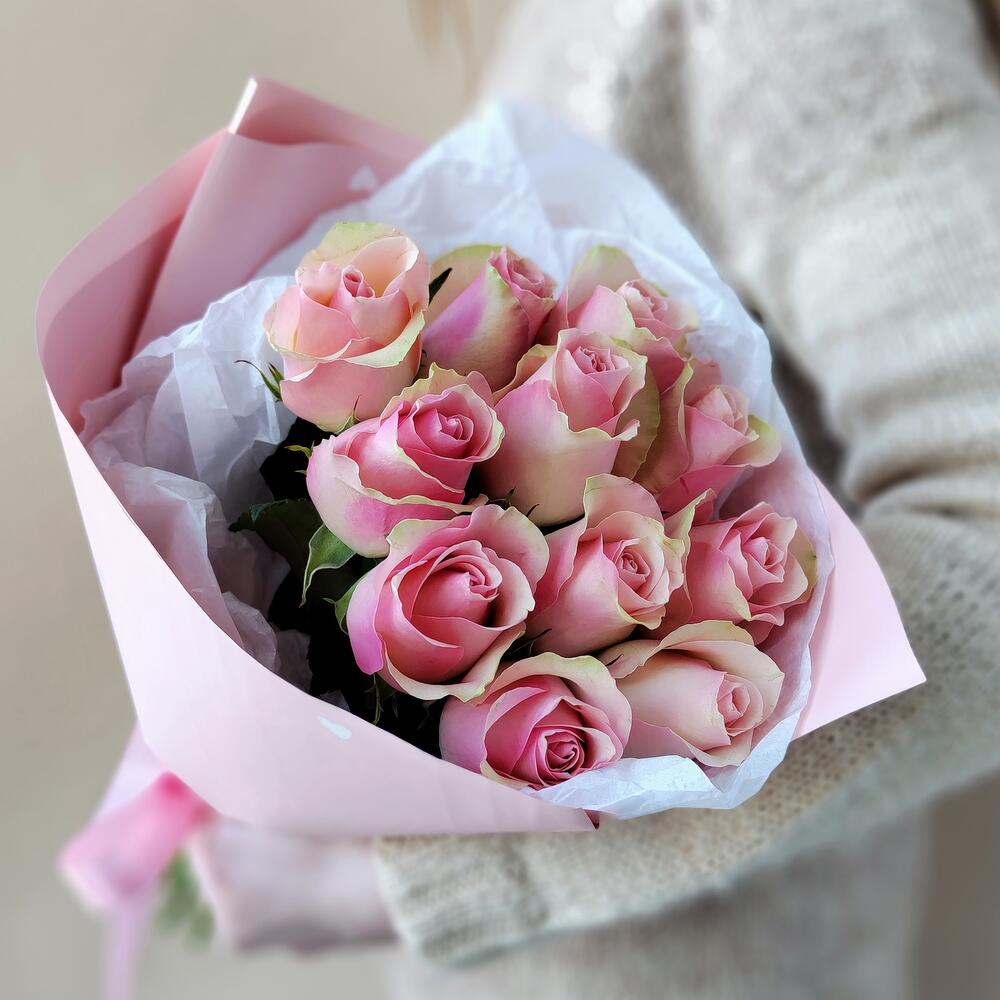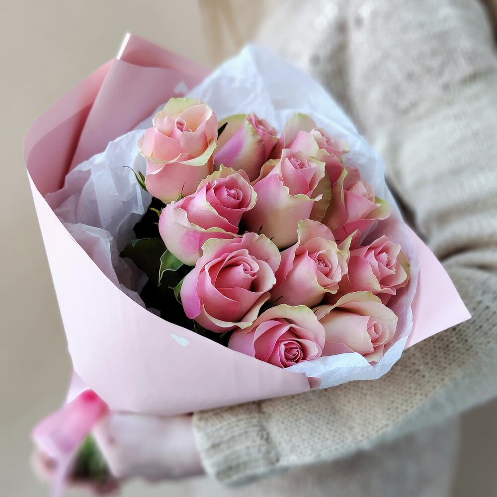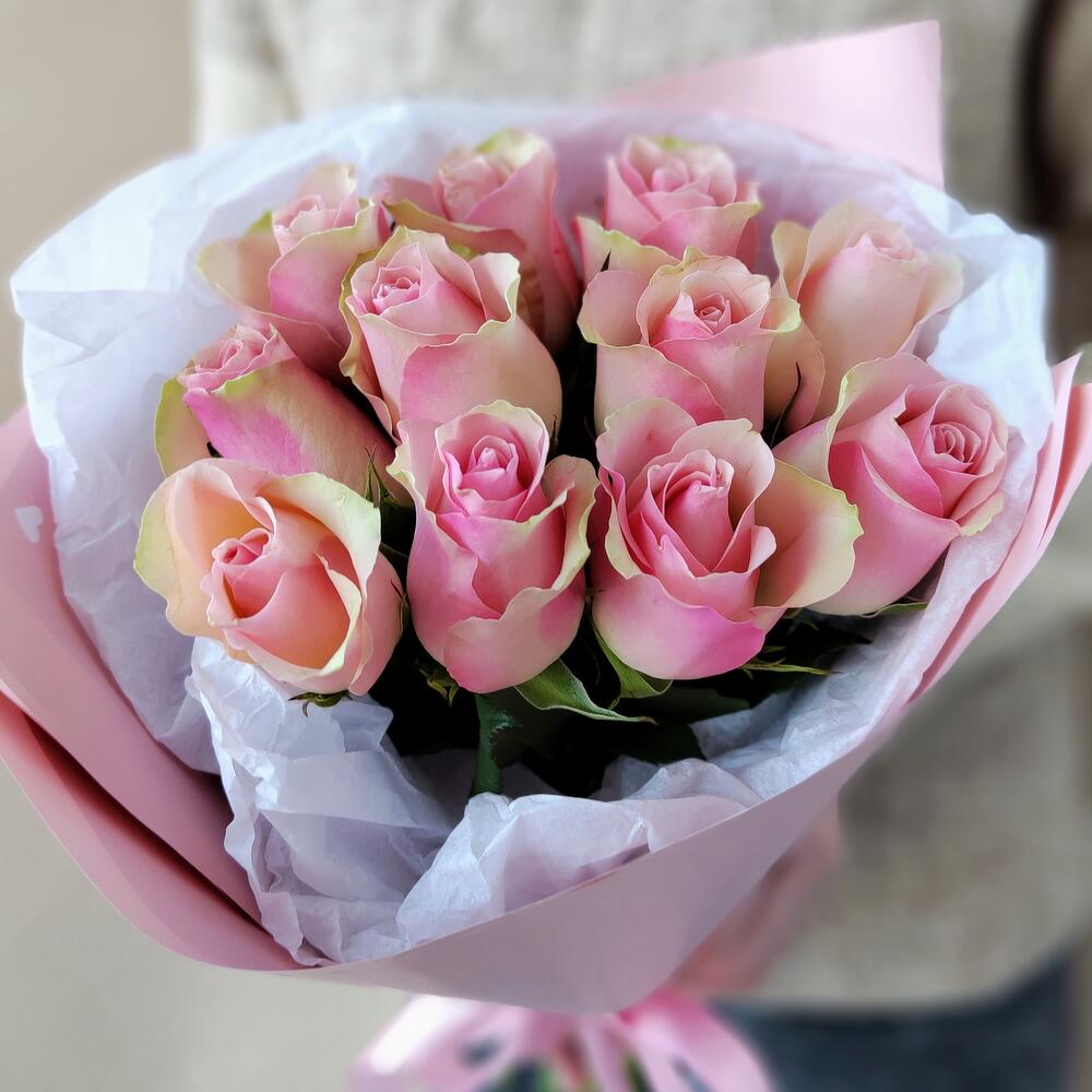 Лента атласная - 1 шт. Роза 40 см - 11 шт. Современная упаковка - 1 шт.
