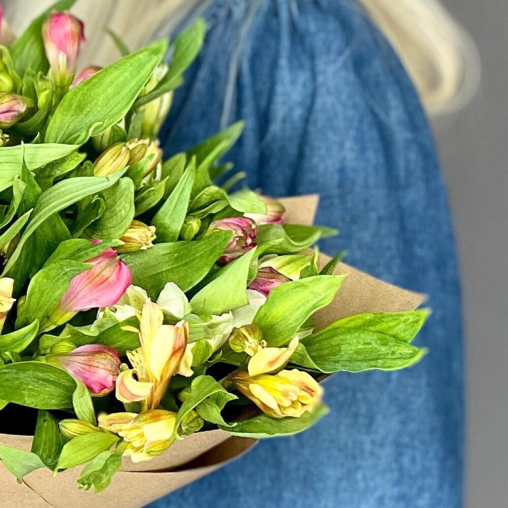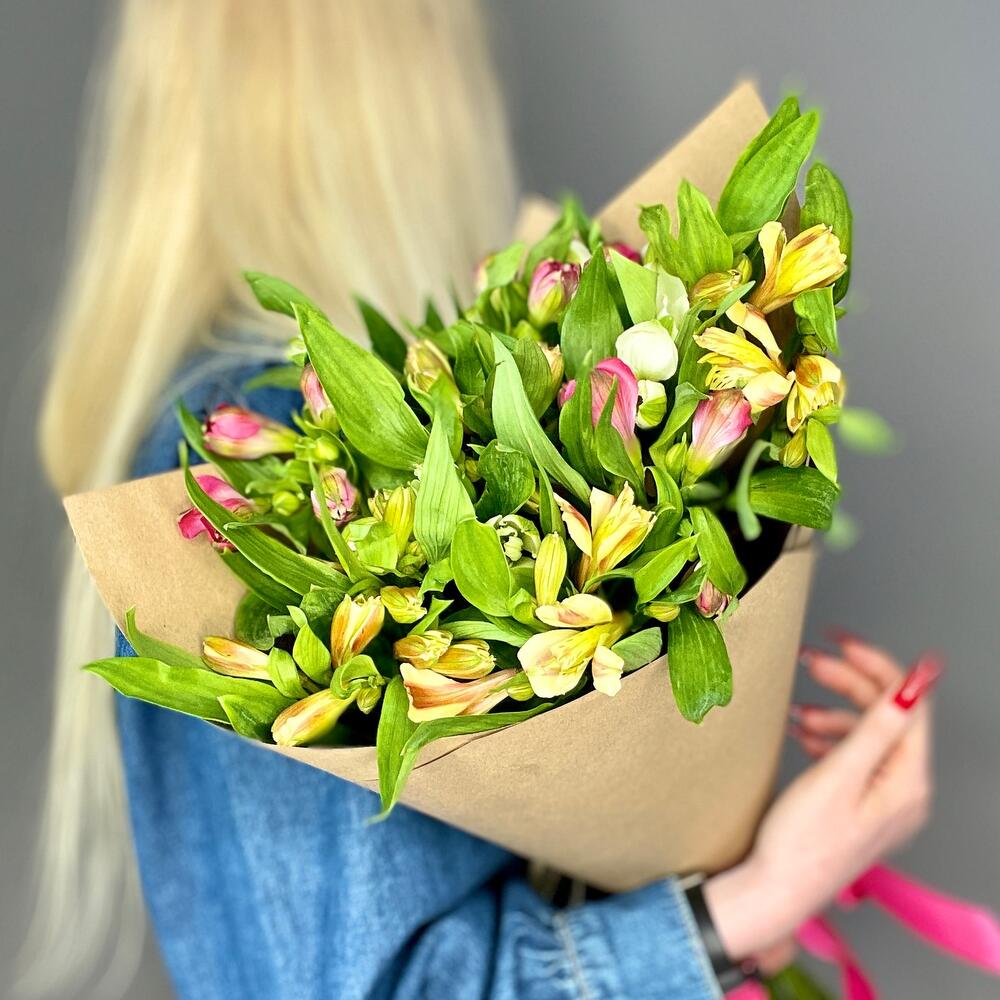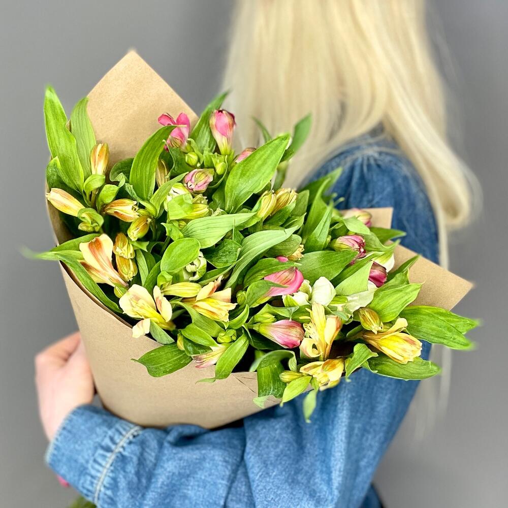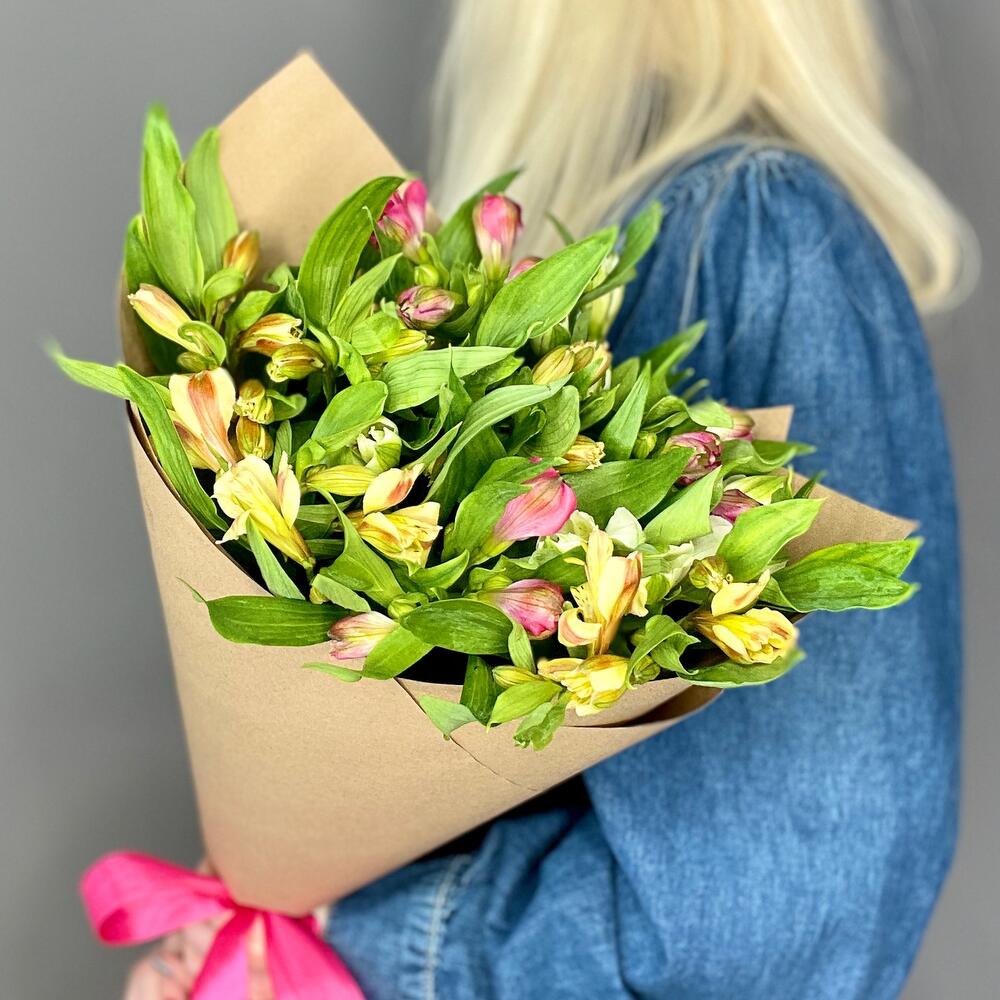 Лёгкий и воздушный букет невероятно стойких и красочных альстромерий. Обратите внимание, что это МИКС, цвета могут отличаться, в зависимости, от наличия. Степень раскрытия бутона от картинки! Рекомендации по уходу: Перед тем, как ставить цветы в воду, срезать стебли (не более 2 см) секатором или острым ножом, под углом 45°, желательно под струёй воды. Ваза должна быть чистой, предпочтительно из стекла или хрусталя. Воду лучше использовать талую или отстоявшуюся. Не ставить цветы рядом с отопительными приборами и под прямые солнечные лучи.
