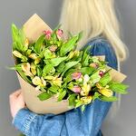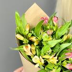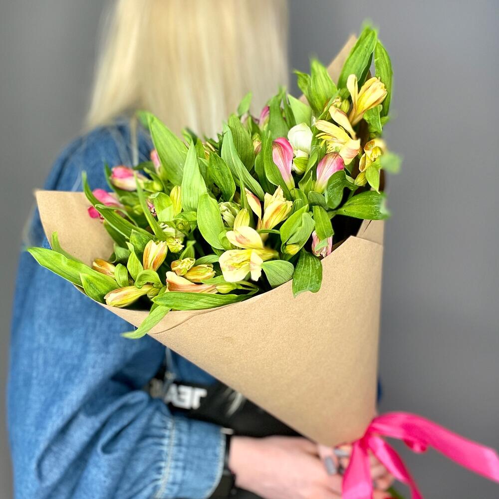 Лента атласная - 1 шт. Упаковка дизайнерская крафт - 1 шт. альстромерия микс - 15 шт.
