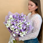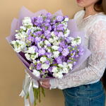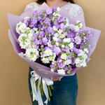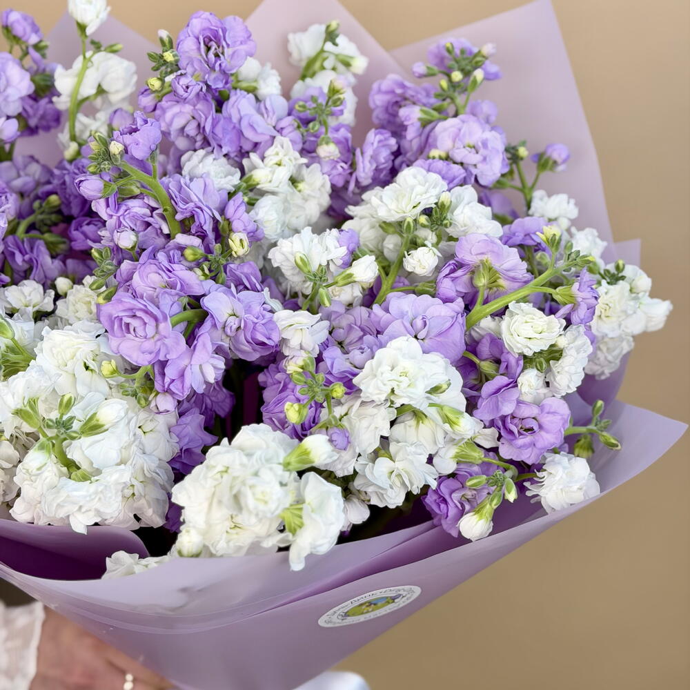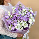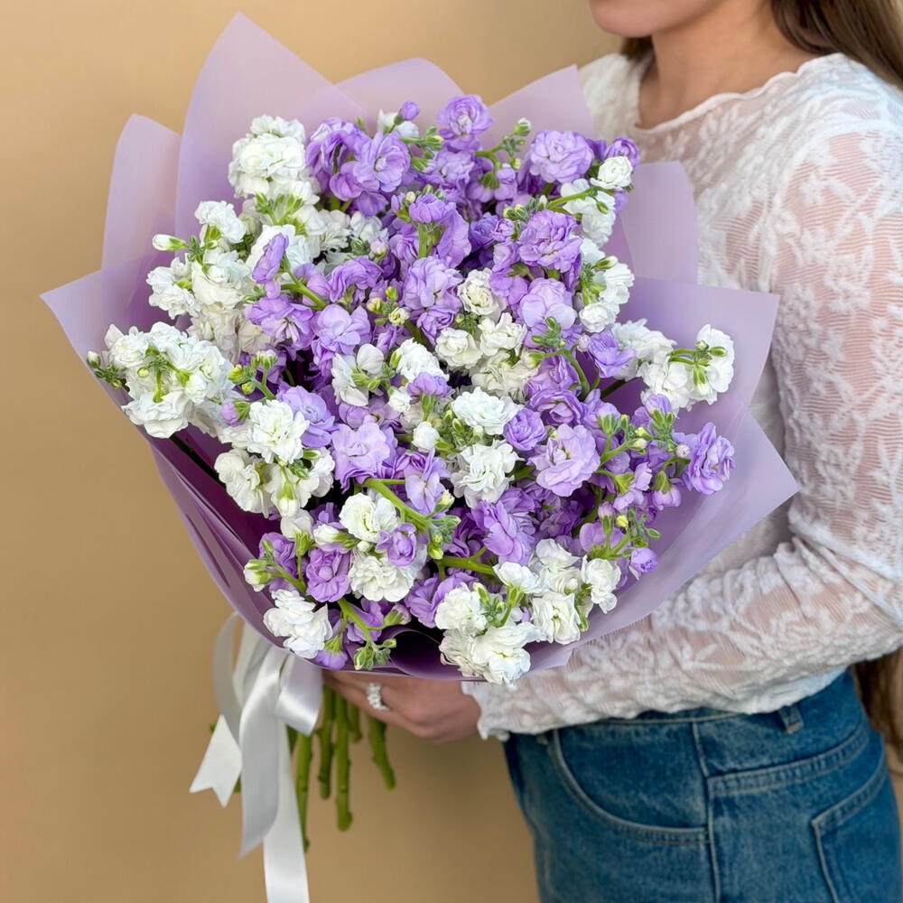 Упаковка дизайнерская - 1 шт. бант атласный - 1 шт. маттиола кустовая - 9 шт.