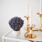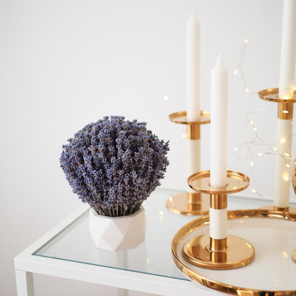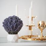 Композиция из засушенных цветов натуральной, органической выращенной, флористической лаванды (сухоцветов) в граненом гипсовом кашпо. Сорт лаванды специально выведен и выращен на ферме сухоцветов “Лавандовый Замок” специально для декорирования пространств. В кашпо натуральная, правильно собранная и высушенная лаванда, выращена органическим способом без применения химикатов и синтезированных удобрений. Каждый стебель надежно закреплен - кашпо не боится переворачивания. Размер кашпо: высота: 20 см; диаметр: 15 см. Натуральная композиция из сухоцветов для ароматного декора дома, кухни или ванной или в качестве подарка. Подходит для любого интерьера (дома, дачи, офиса). Натуральная композиция в интерьер из сухоцветов не требует воды, полива, света и положительных температур. Флористическая лаванда не осыпается, если находится в покое, без сквозняка, пересушивания и прямого солнца. Это оригинальный подарок для любимых. Станет символом бесконечной любви, так как букет долговечный. Аромат лаванды помогает устранить страх, бессонницу и депрессию, дарит спокойствие и защищает от моли и других вредных насекомых. Каждая композиция из сухоцветов синей флористической лаванды надежно упакован в многоуровневую защитную упаковку и поэтому доставляется в неповрежденном состоянии. Трогательный подарок для любимой женщины, мамы, бабушки, подруги, девушки на праздник. Композиция из сухоцветов не требует полива и воды, поэтому может использоваться, как оригинальный ароматный лавандовый декор для дома, кухни, спальни, прихожей, ванной комнаты и туалета, в том числе и в неотапливаемых помещениях. Отрицательные температуры на страшны для правильно высущенной флористической лаванды. Все соцветия сухостоя лаванды для декора синего цвета, ароматные, крупные. Лаванда сушеная, высушенная лаванда, сухостой для декора, сухостой, сухостой для декора, лаванда, декоративный букет, цветы в вазе, сухоцветы для декора, сухоцвет лаванда, растения, натуральные цветы, кашпо, ваза, пучок лаванды, букет, подарок, дом, уют. Что такое флористическая лаванда Лавандового Замка? Это особый сорт лаванды, селекционированный, размноженный, выращенный, особым образом собранный командой Лавандового Замка на собственной ферме. С 2013 года мы произвели и доставили более 250 000 букетов из лаванды по всему миру. Уход за композицией очень простой: время от времени убирайте пыль обычным феном на низкой скорости или кисточкой. Если помещение с низкой влажностью, иногда обрабатывайте водой из пульверизатора. А если хотите сохранить яркий цвет соцветий, избегайте прямых солнечных лучей. В остальном композиция абсолютно неприхотлива, прекрасно переживет зиму на неотапливаемой даче, а также полное отсутствие солнечного света в вашей туалетной комнате. И это может быть резервный подарок в багажнике машины для создания эффекта «вау» в любое время и в любом месте, где бы вы захотели сделать кому-то удивительный сюрприз.