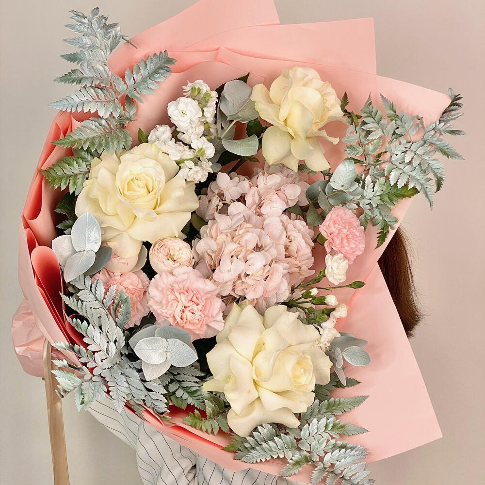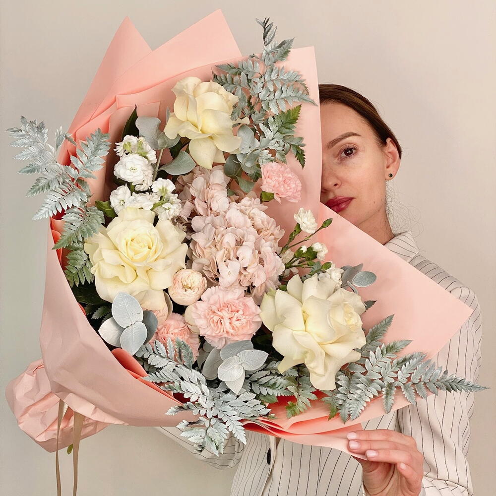Авторский букет из гортензии и папоротника Love 14 Moscow