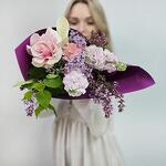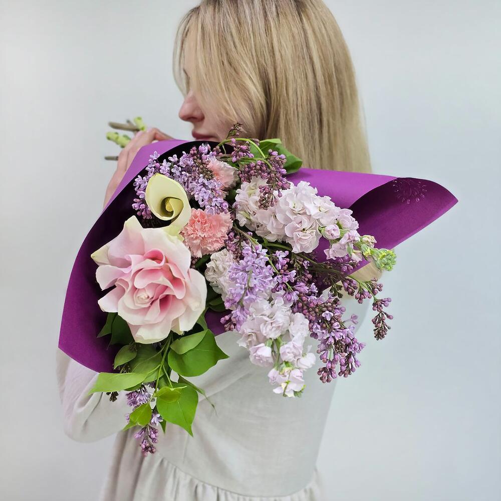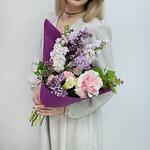 Авторский букет из сирени, роз и маттиолы