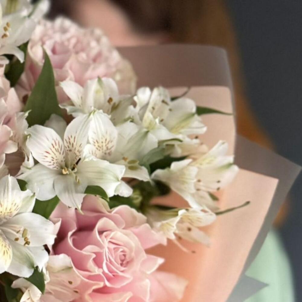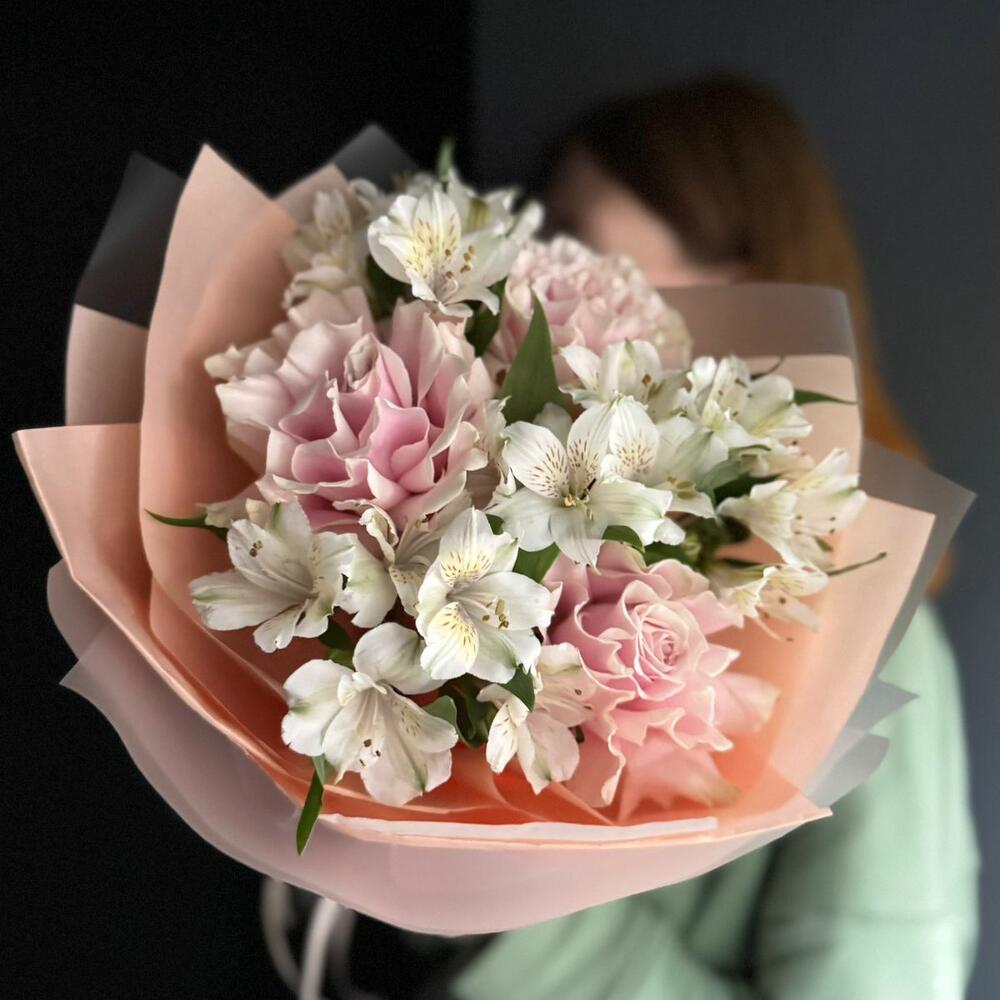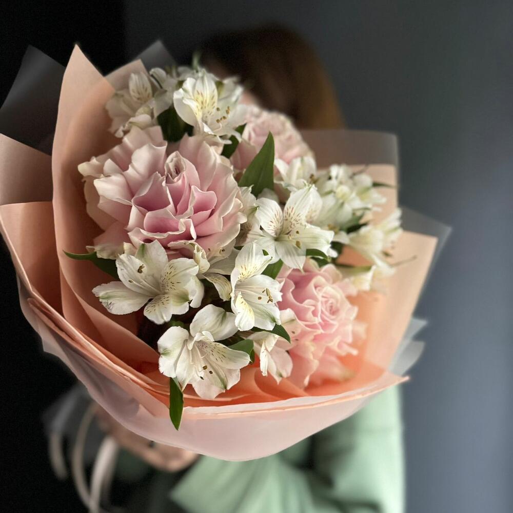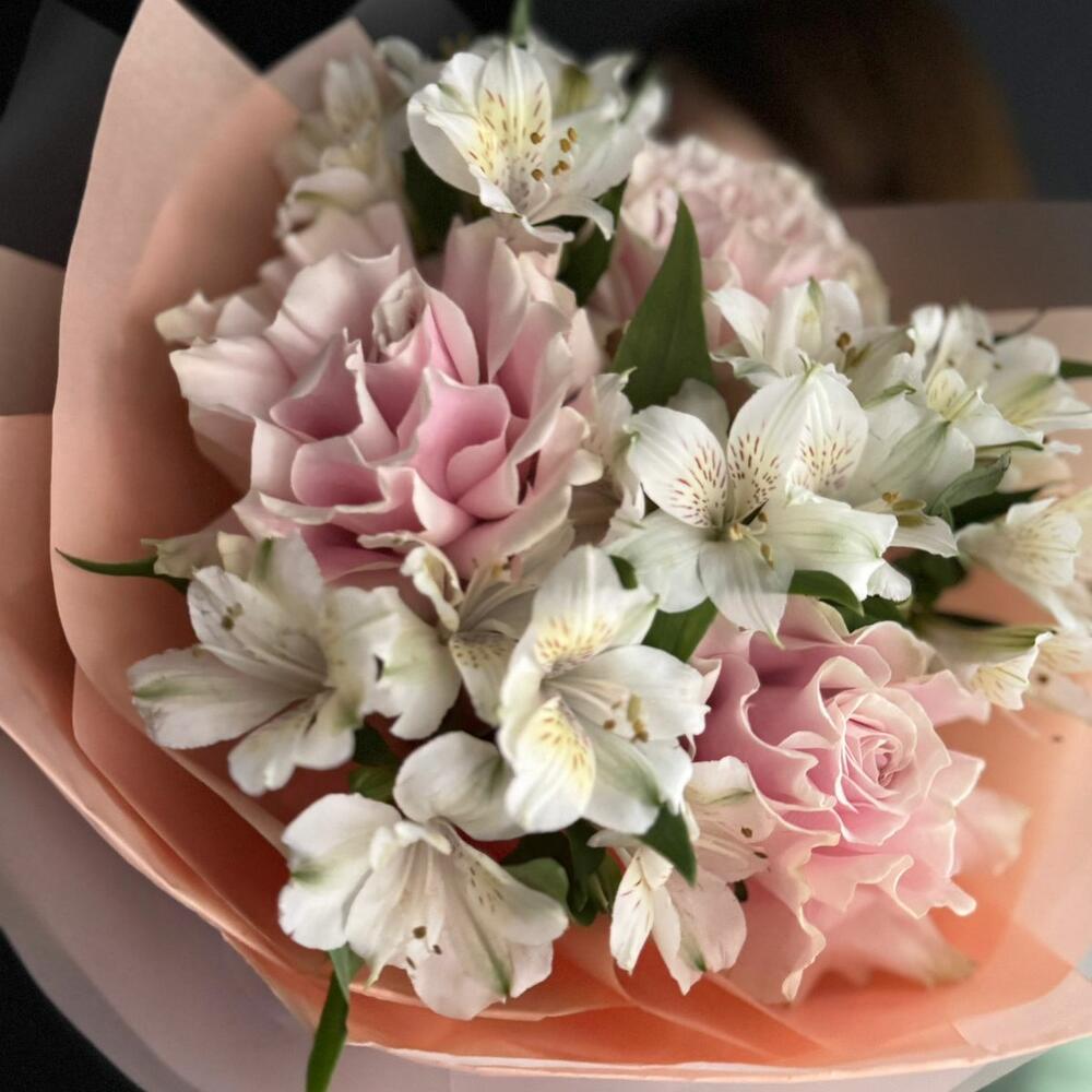 Авторский букет французская роза, альстромерия на день рождения