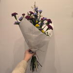 Ваксфлауэр - 1 шт. Лимониум - 1 шт. Рускус - 4 шт. Кустовая гвоздика - 6 шт. Фисташка - 1 шт. Крафт упаковка - 1 шт. Нарцисс Желтый - 3 шт.