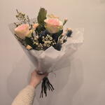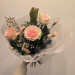 Авторский букет Нежность с Розами колючками гвоздиками ваксфлауэром