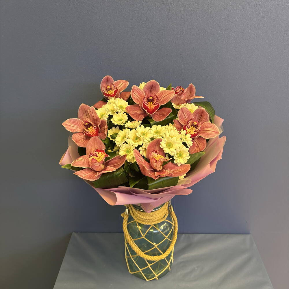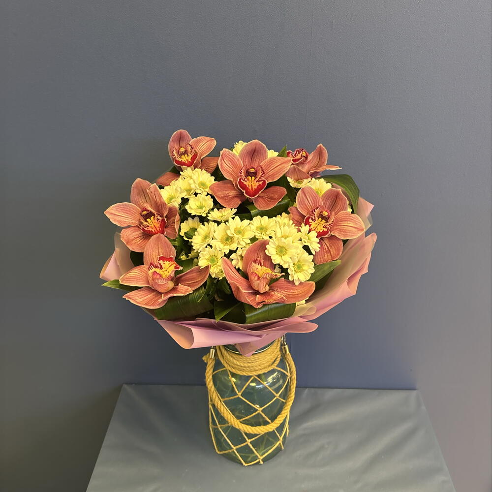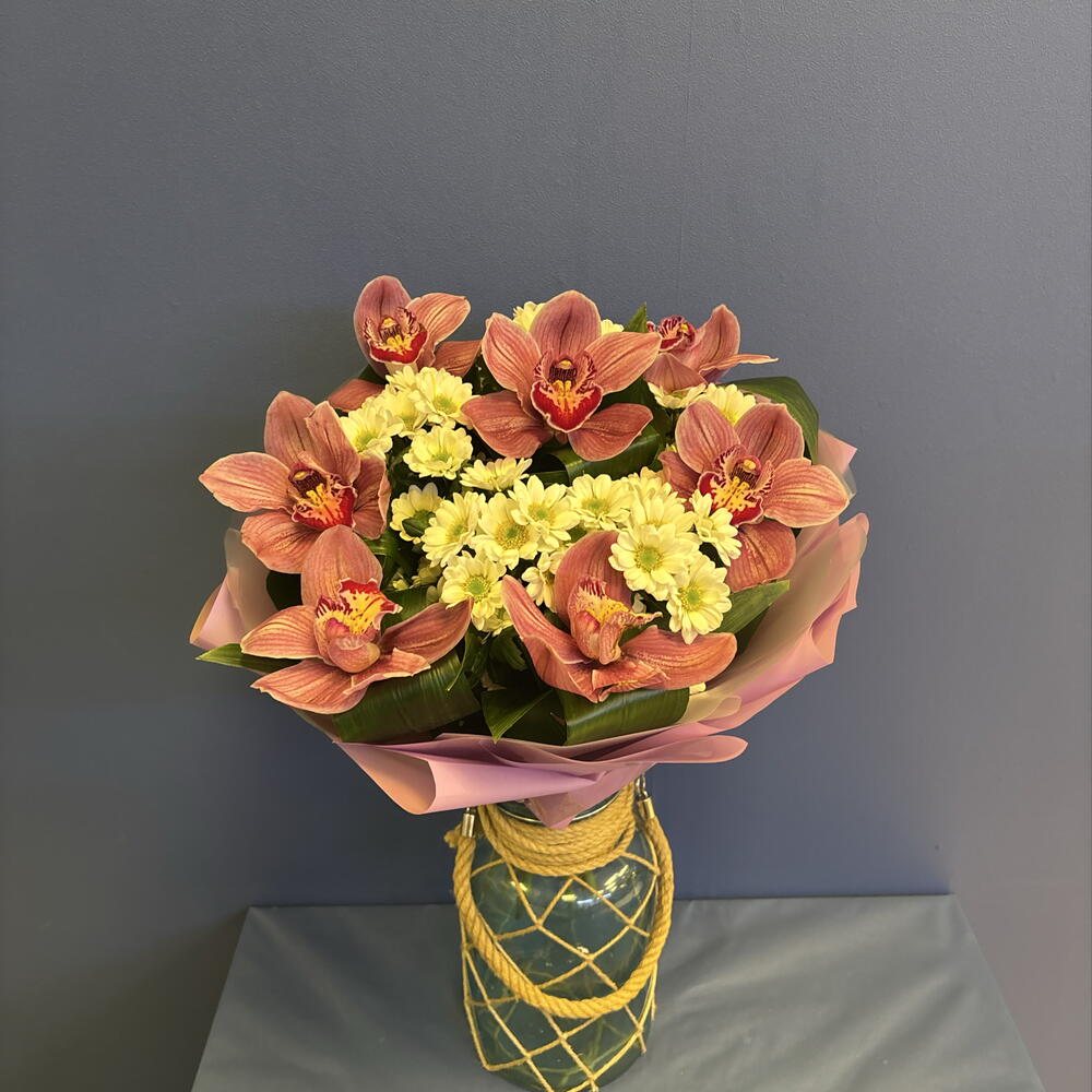 Авторский букет с орхидеями и сантини