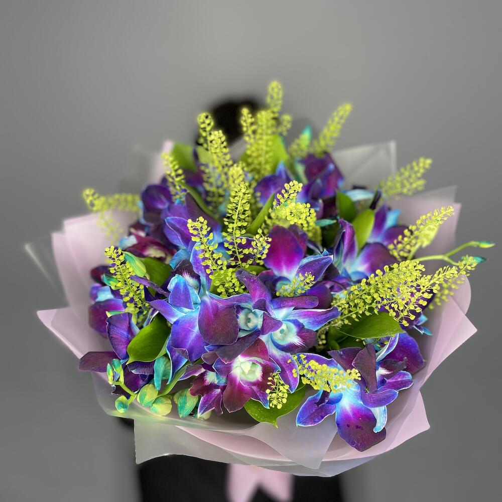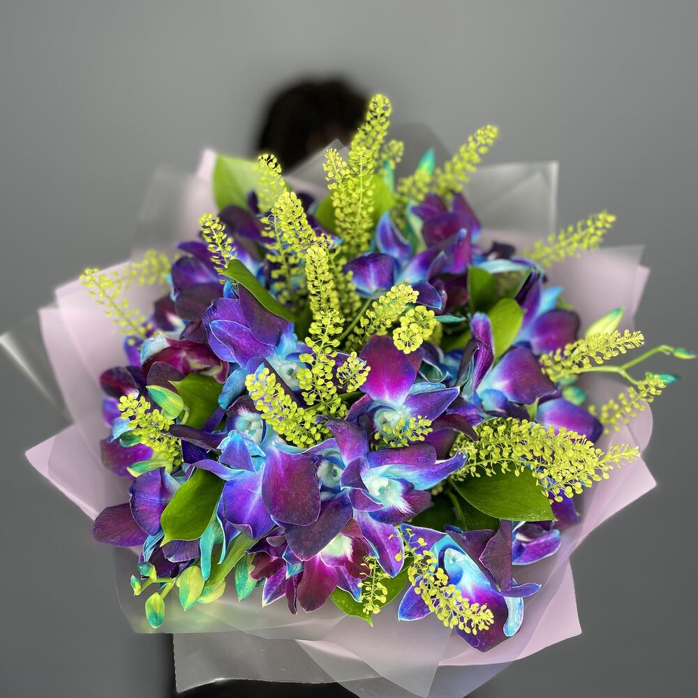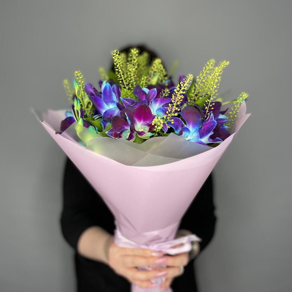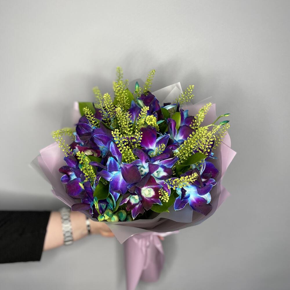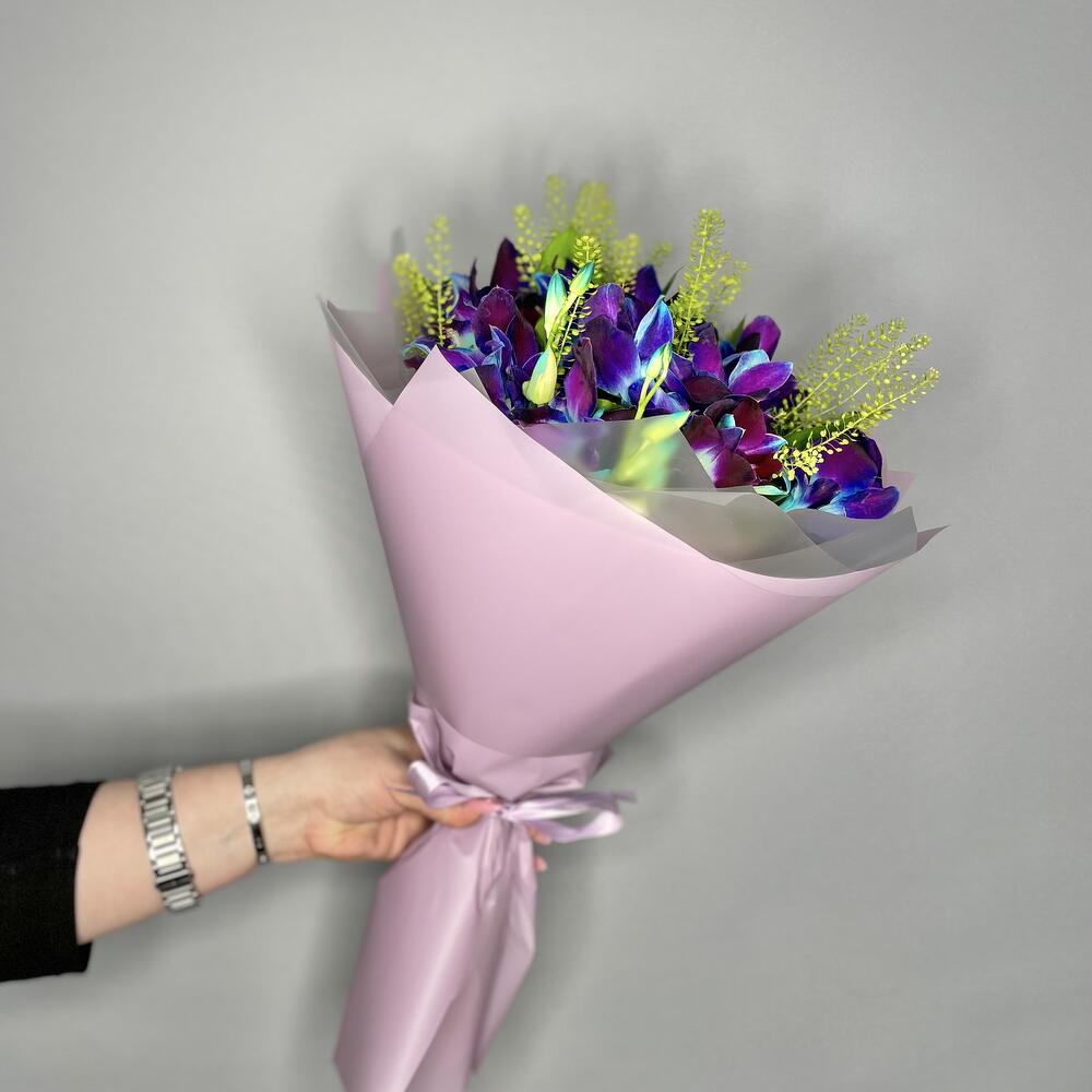 Рускус - 2 шт. Лента атласная - 2 шт. Упаковка дизайнерская - 3 шт. Тласпи Green Bell - 2 шт. удлинитель для орхидеи - 17 шт. дендробиум на пробирке - 34 шт.