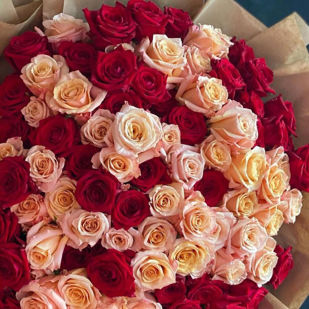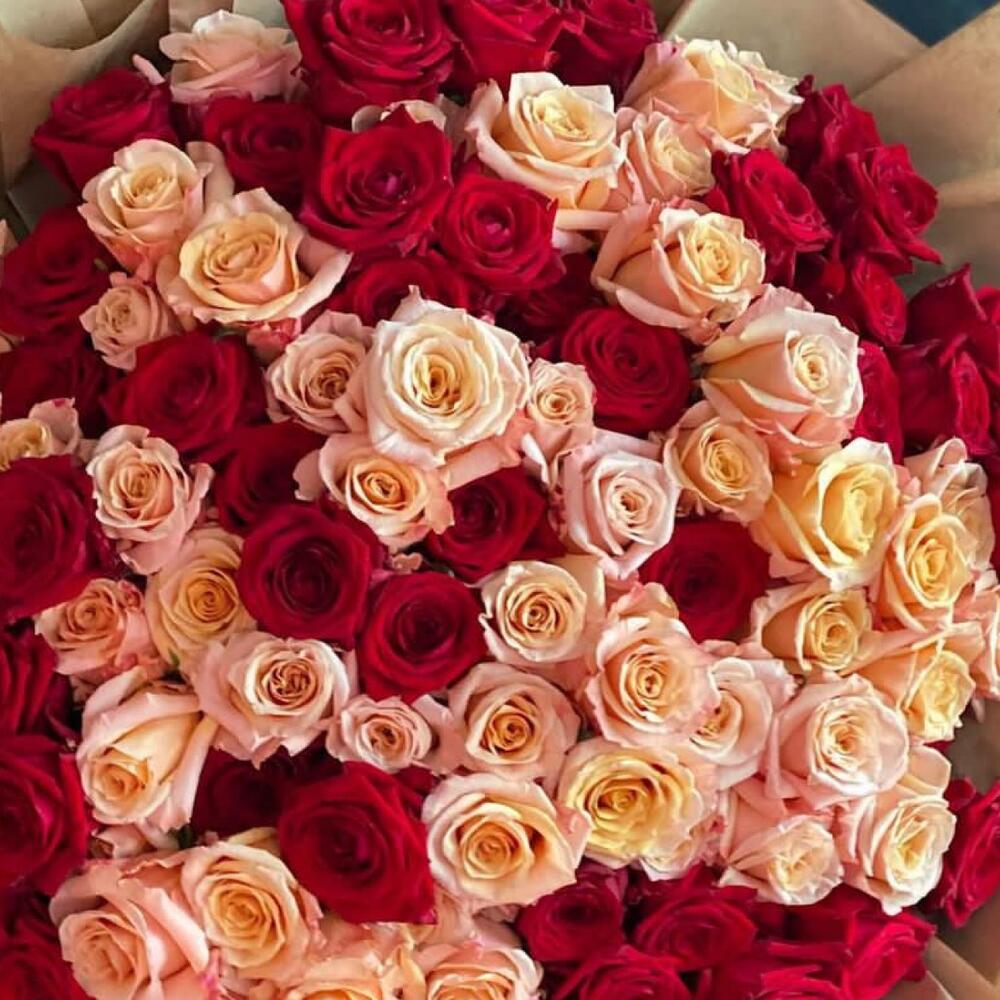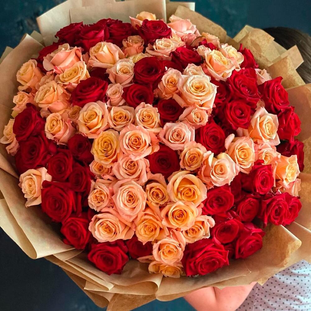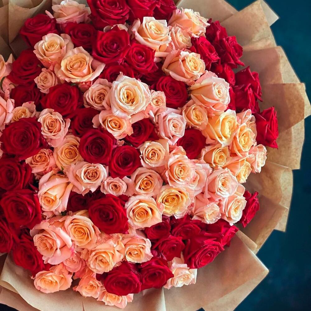 Самое красивое сочетание 💔 Бархатная красная роза и нежная персиковая В букете 101 Роза