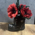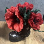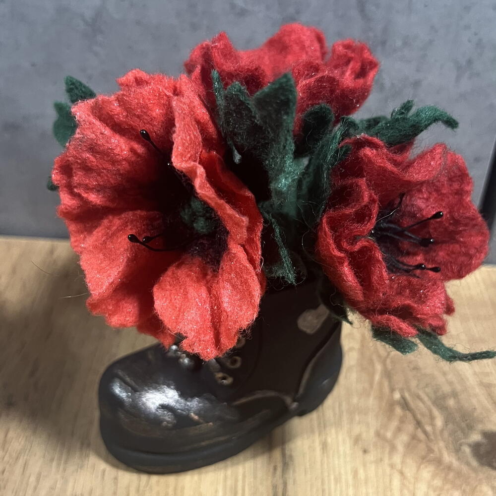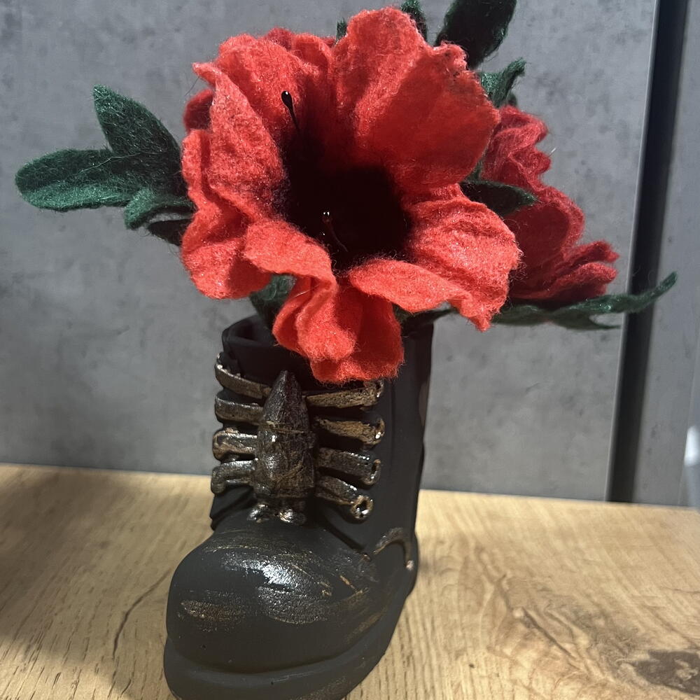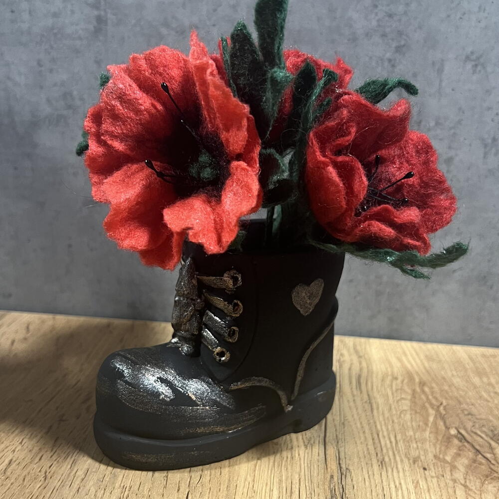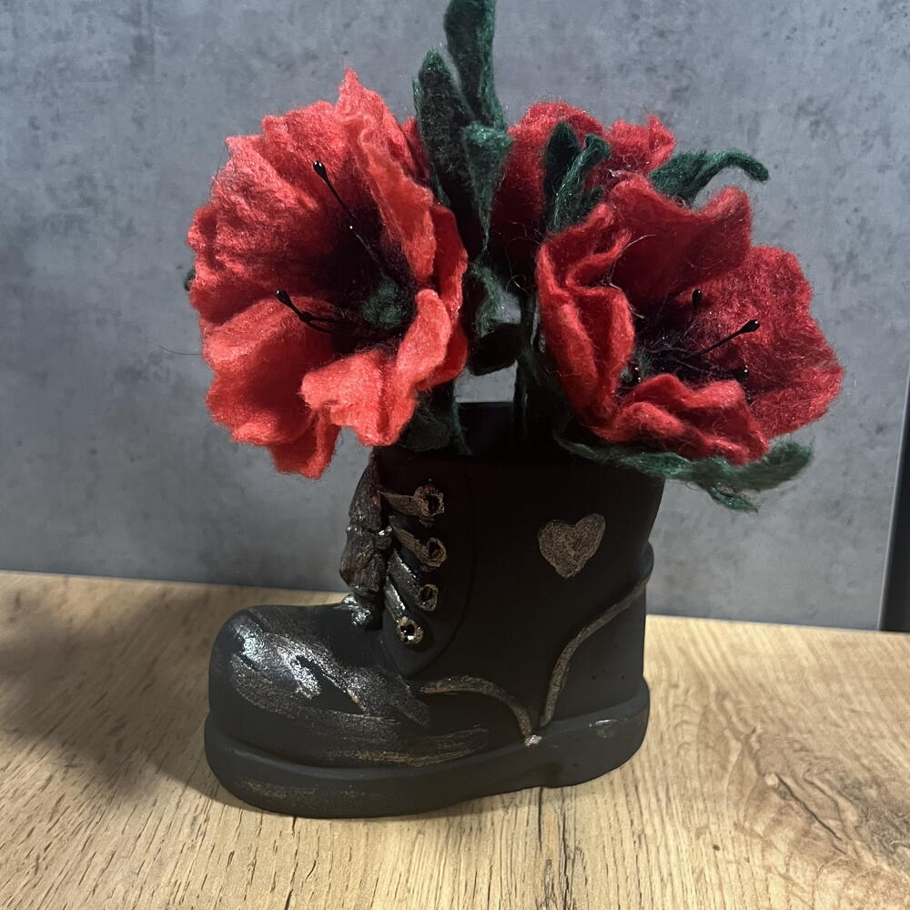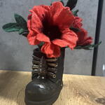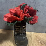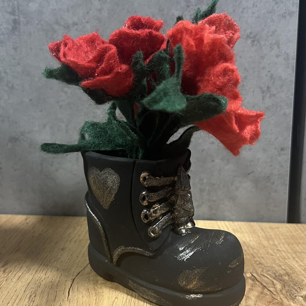 Ботинок из гипса,высотой 8 см с цветами из натуральной шерсти.