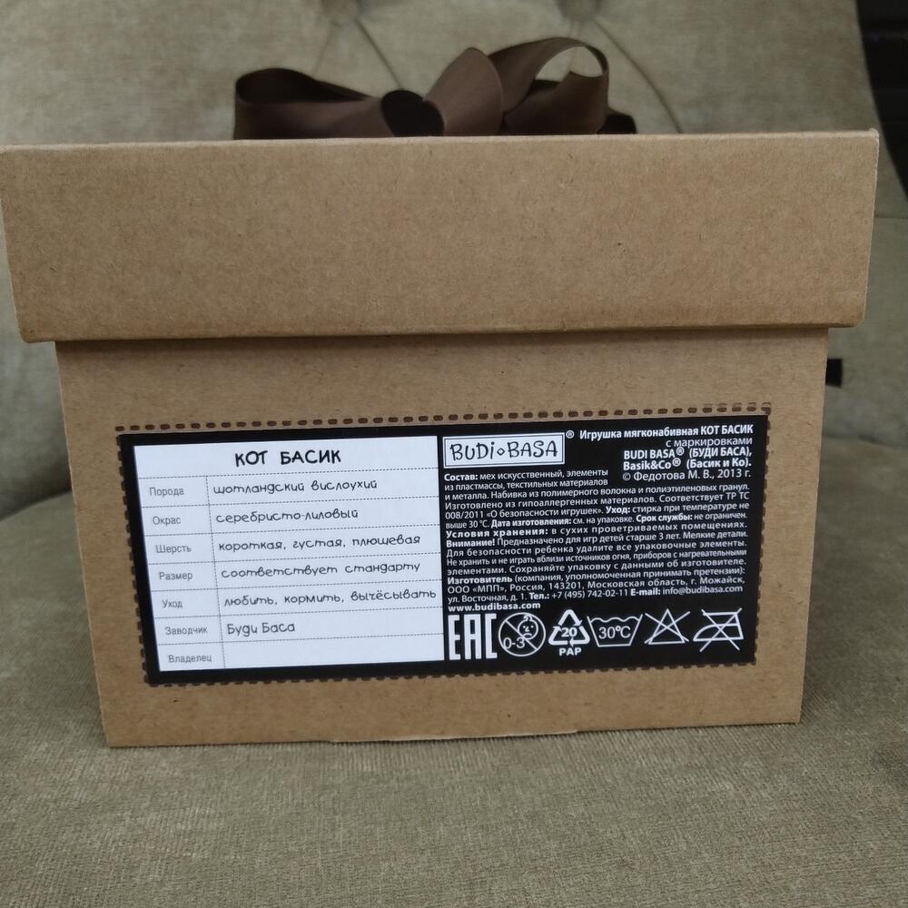 Мягкая игрушка в крафтовой коробке с атласным бантом. Отличный подарок.