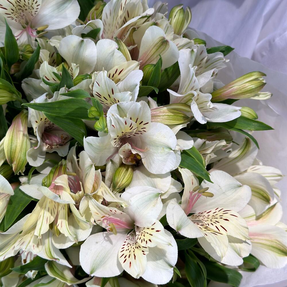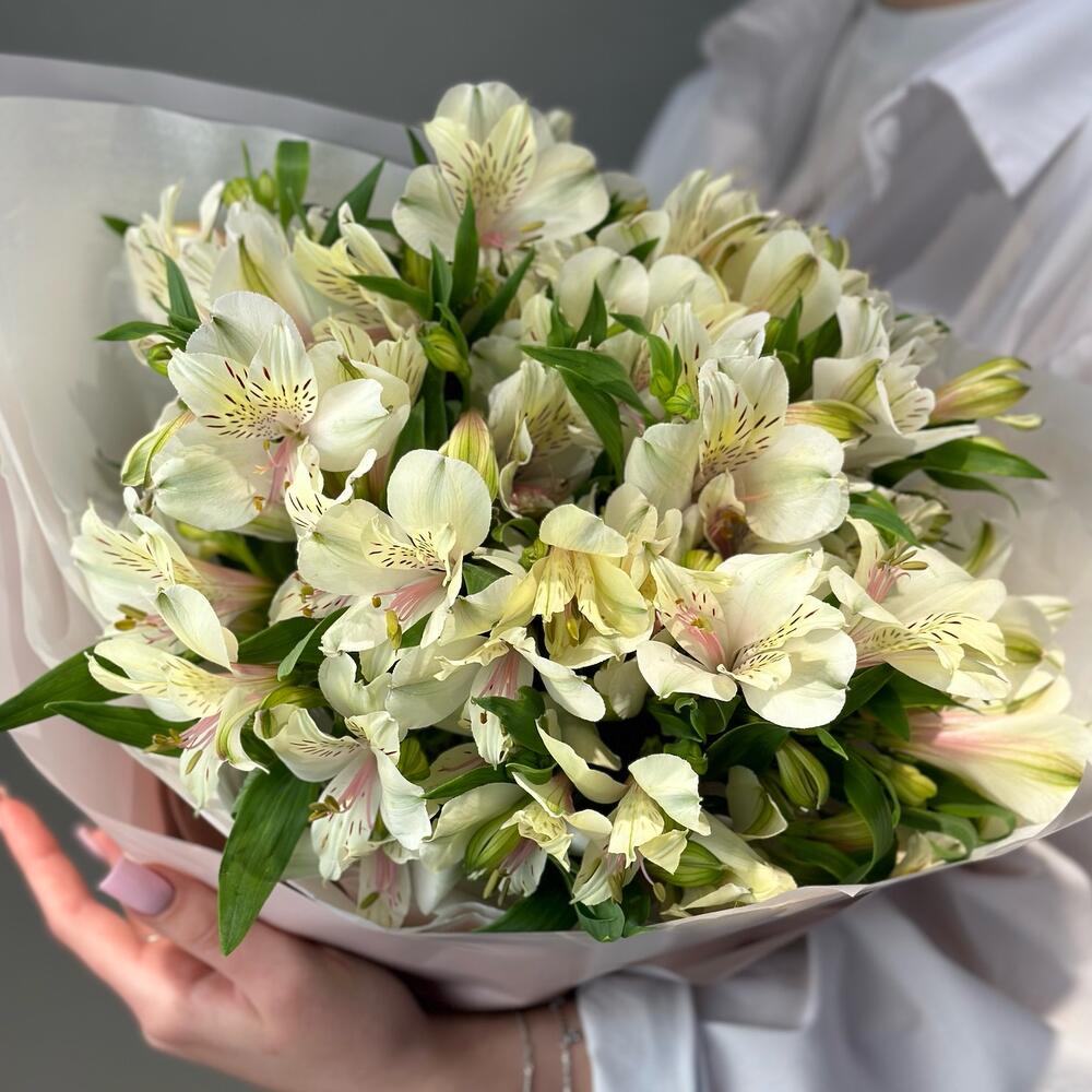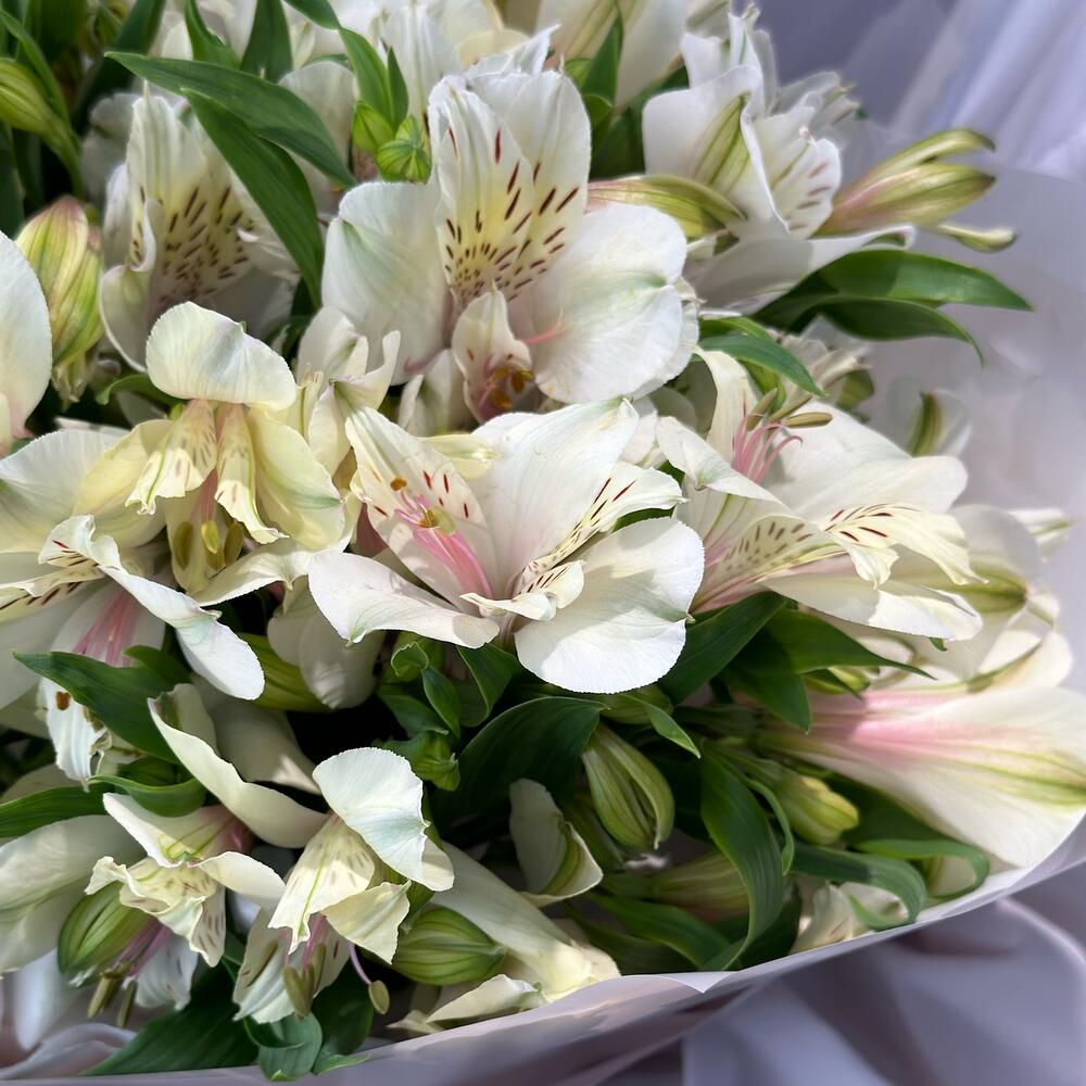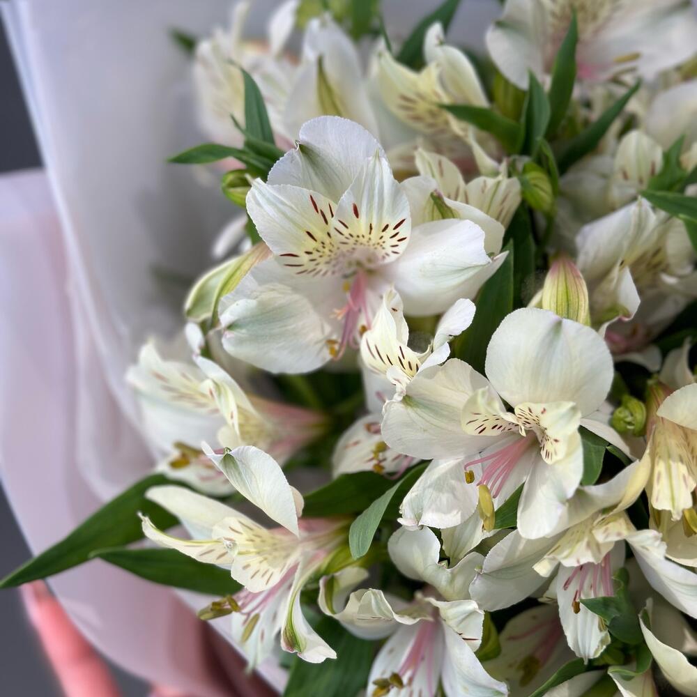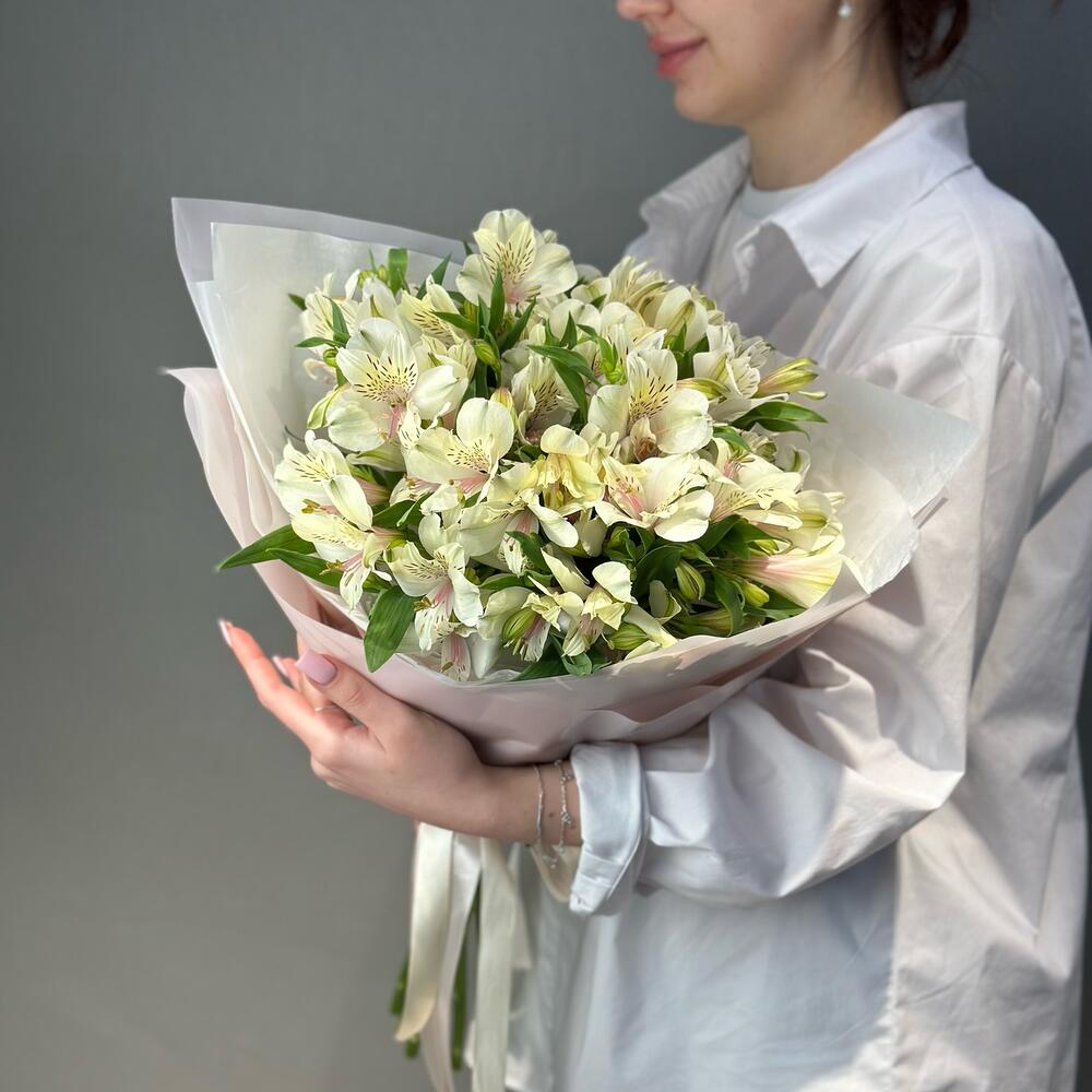Пышный букет из свежайшей альстромерии. Букет из льстромерии очень воздушный и стойкий.Каждый цветочек в букет отобран флористом с трепетом и любовью, а это значит, что цветы в букет вложены без надломленных бутонов и рваных листьев, только идеальные цветочки для Вашего повода!