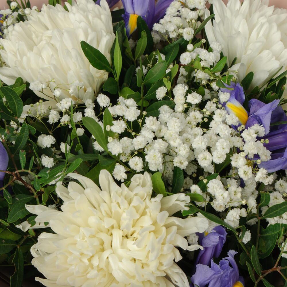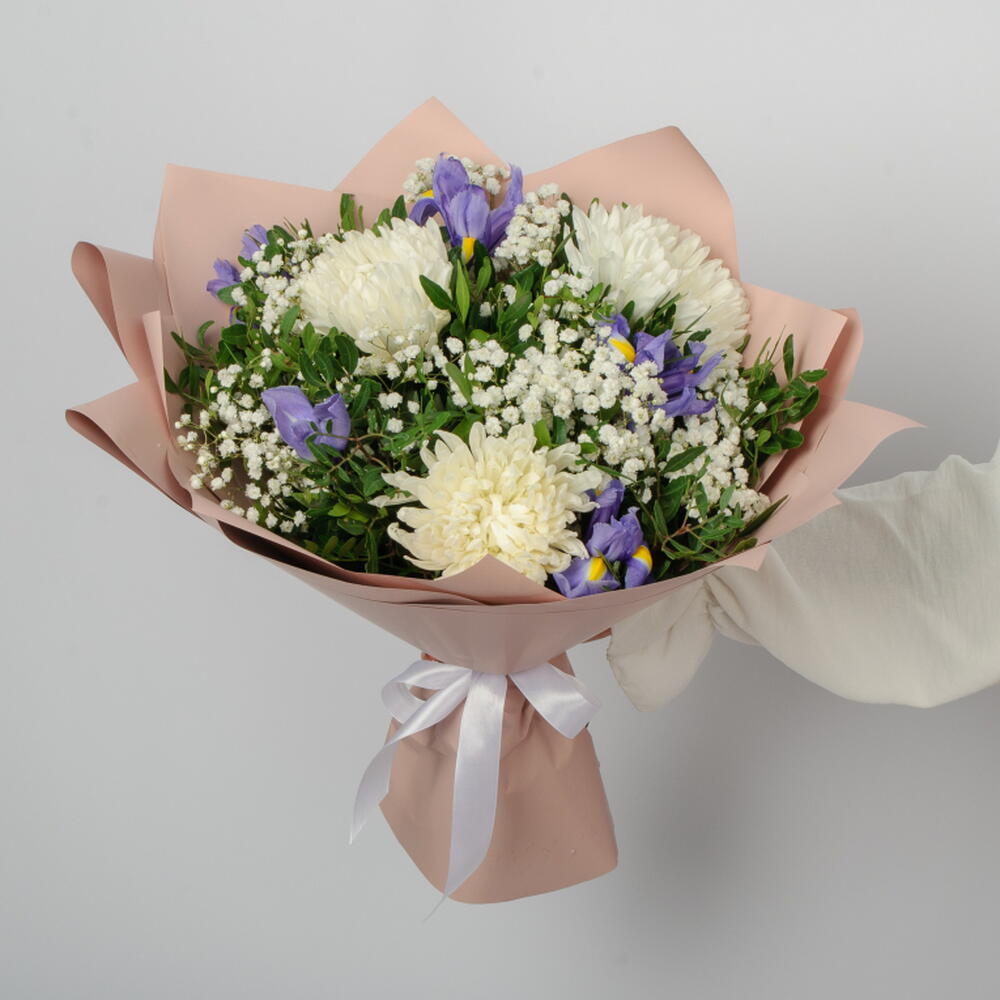 Гипсофила - 1 шт. Ирис - 5 шт. Хризантема - 3 шт. Фисташка - 5 шт.