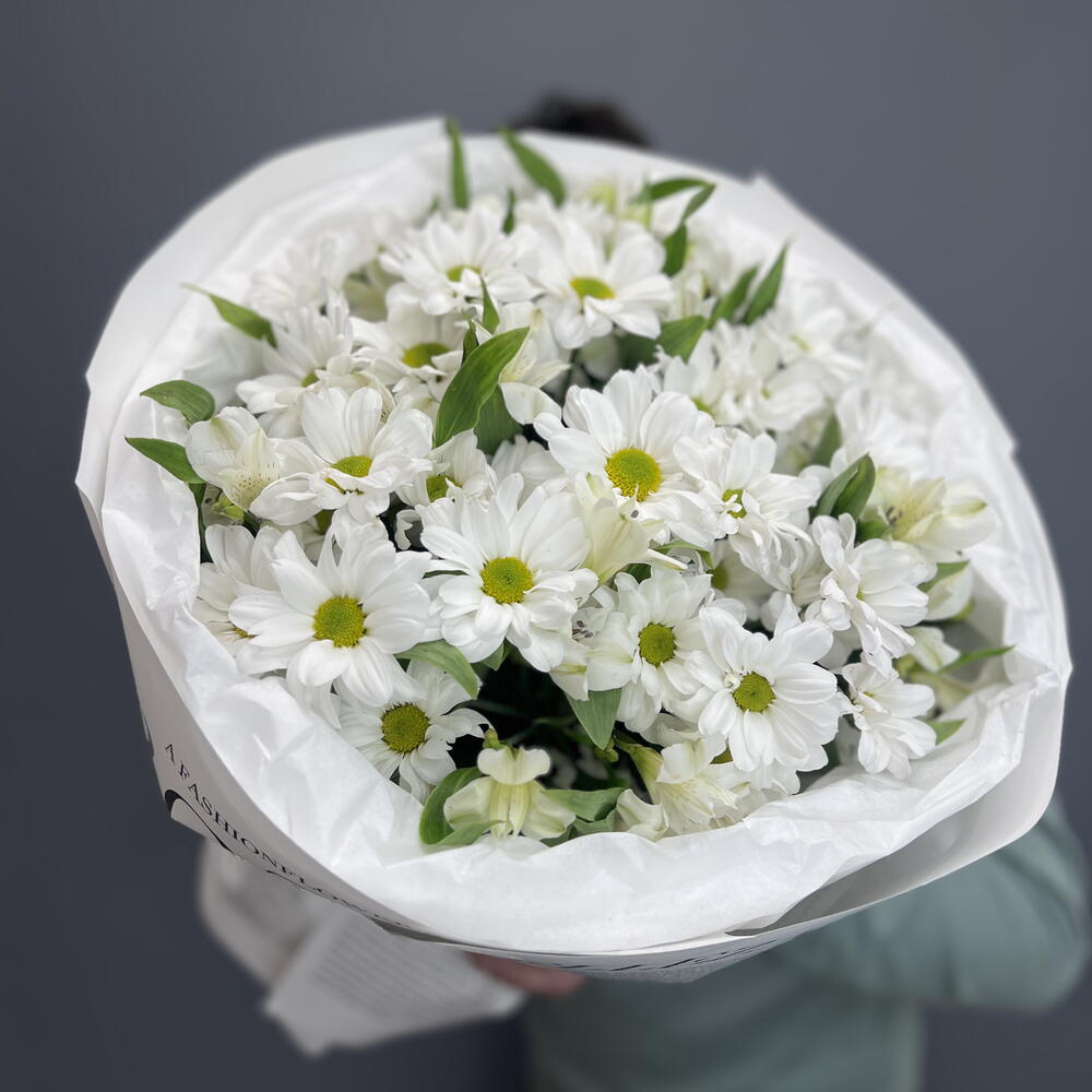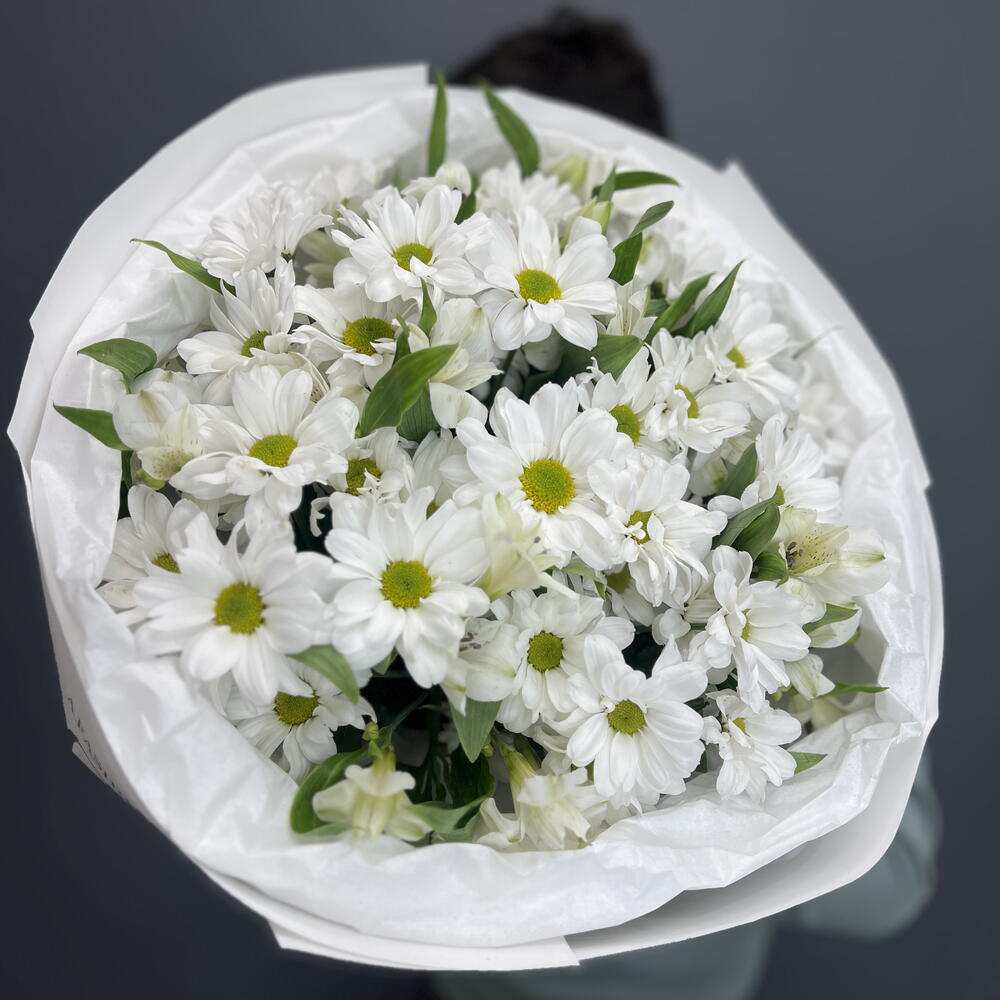 Альстромерия - 5 шт. Хризантема кустовая - 5 шт. Упаковка дизайнерская - 1 шт.