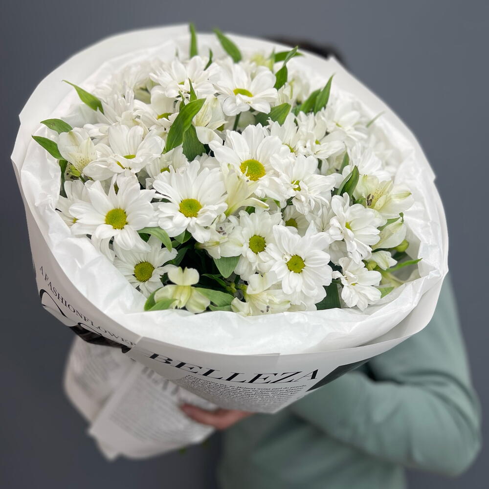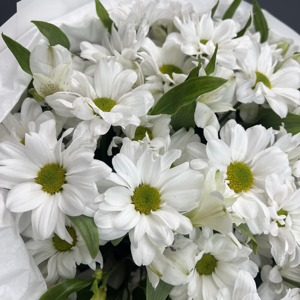 Белоснежный букет из стойких видов цветов, который будет радовать получателя долгое время❤️ Перед покупкой просим обратить внимание на размеры, указанные в карточке товара🙌 После вручения букета необходимо: 💕 Подрезать букет секатором под 45 градусов 💕 Поставить букет в прохладную воду (ваза должна быть высотой не менее 30-40 см) 💕 Избегать попадания на букет прямых солнечных лучей, не ставить цветы возле приборов отопления и кухонных плит 💕Любоваться прекрасным букетом от дорогого вам человека!