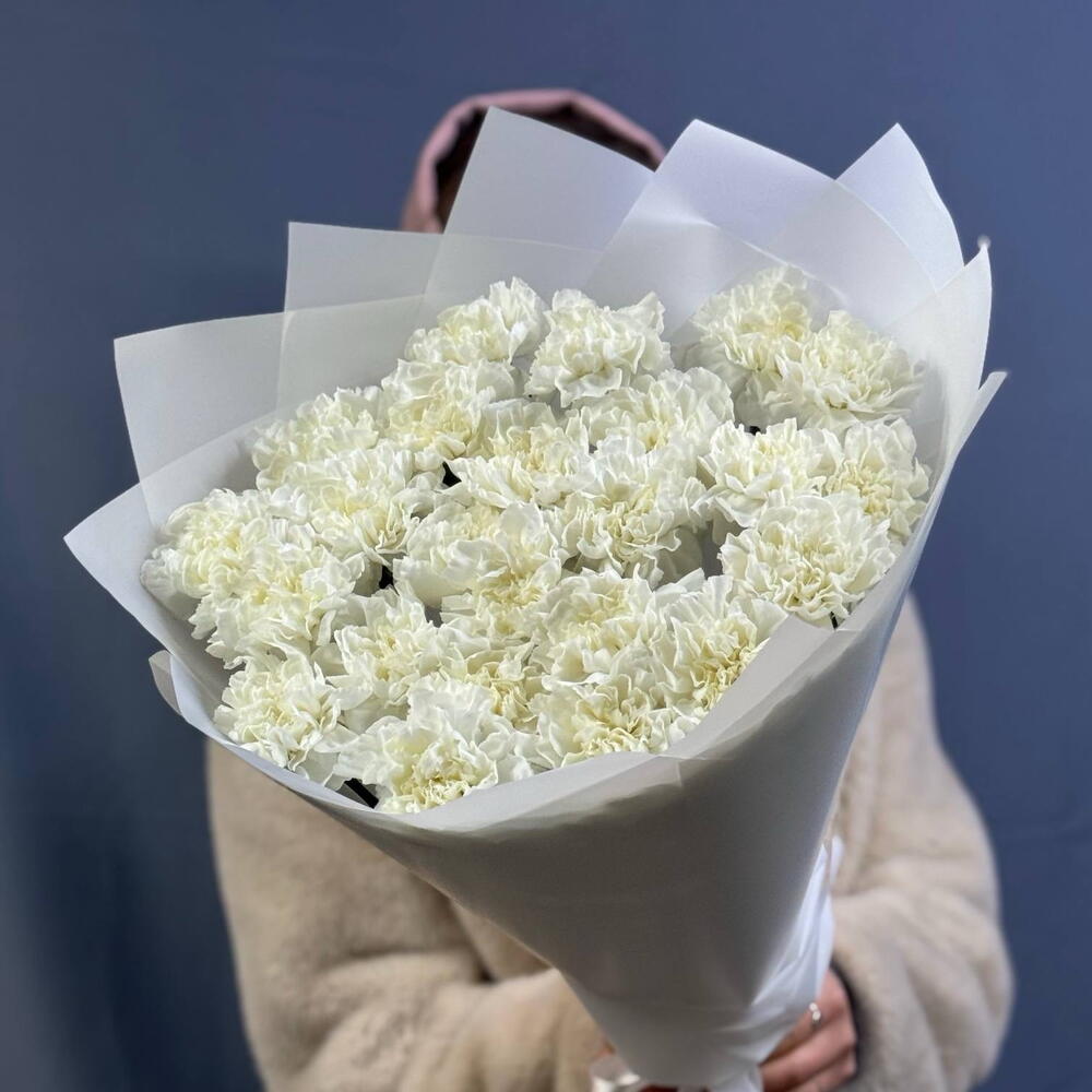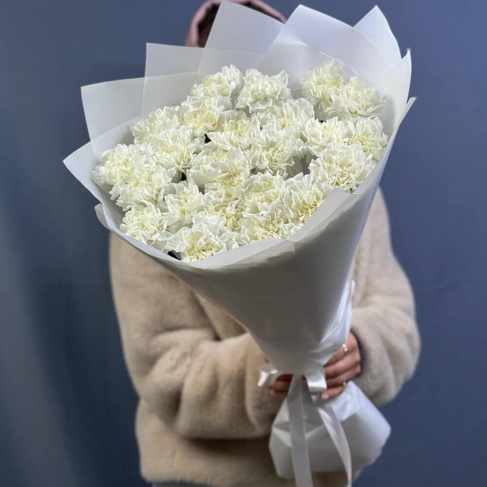 Упаковка - 3 шт. Лента атласная - 1 шт. белые диантусы - 25 шт.