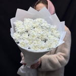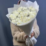 Доставка была без упаковки, цветы замёрзли. Краешки цветов были вялыми. Жемчужной нитки не было. Выглядело уныло .