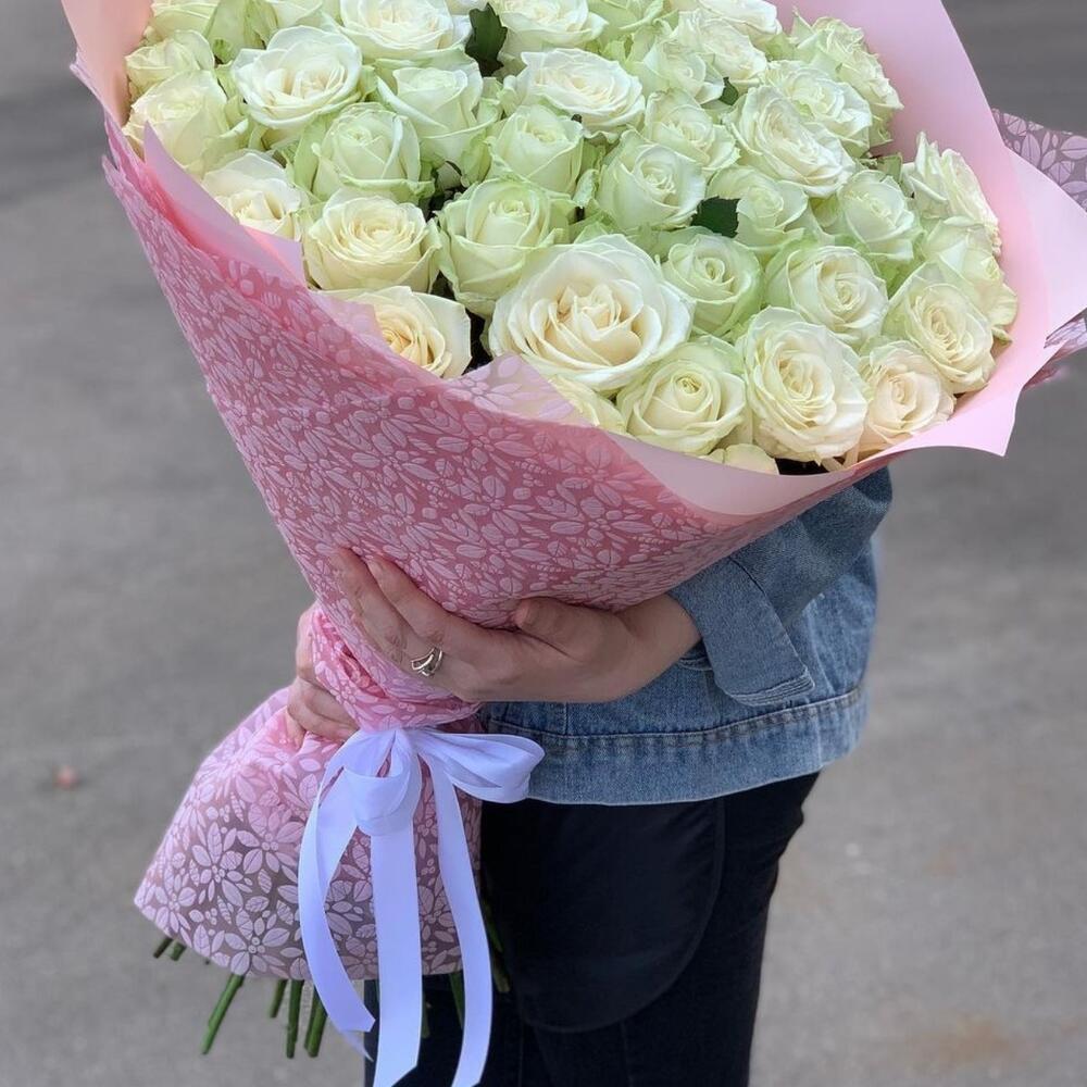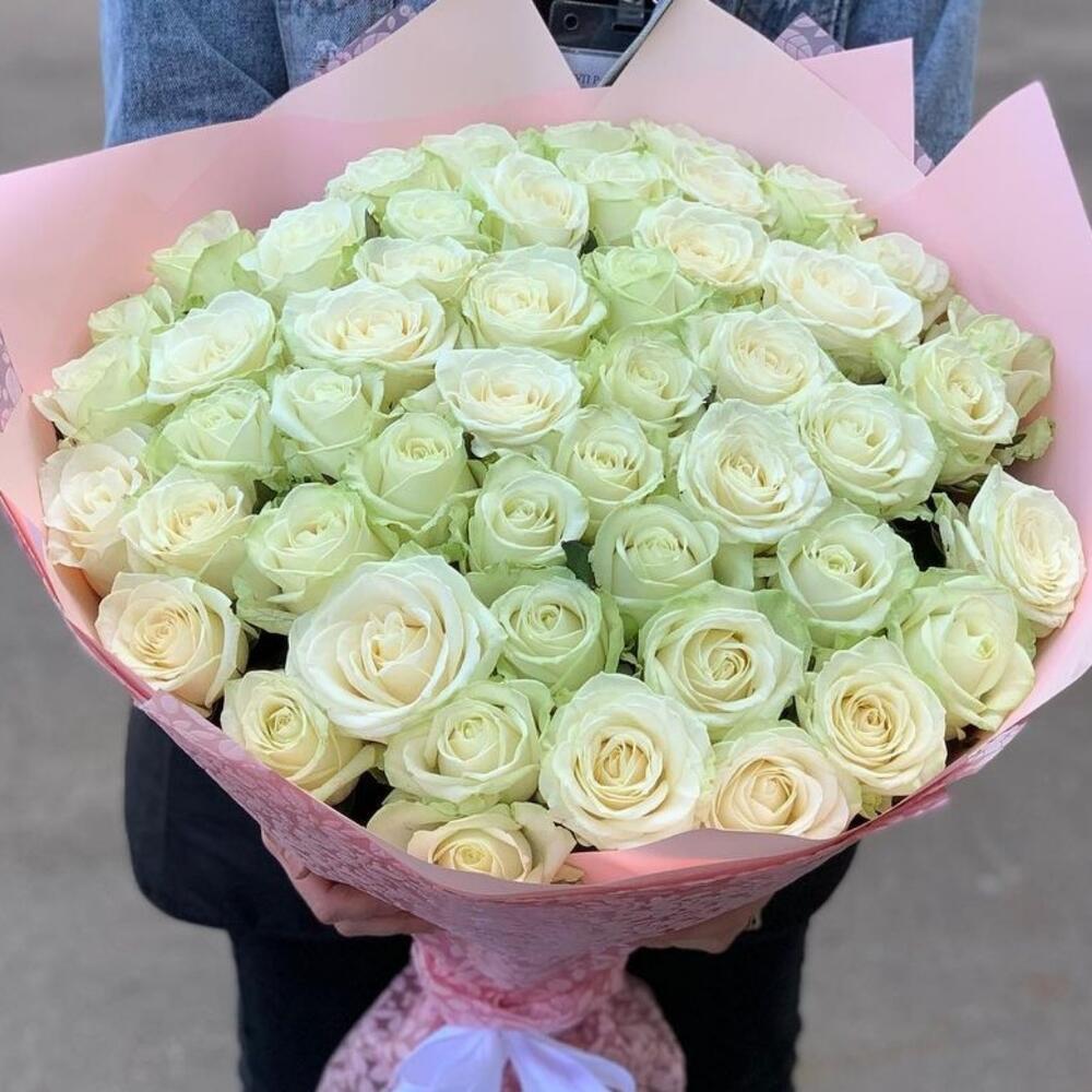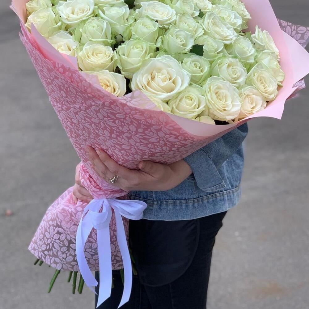 Роза Аваланж - 51 шт. Упаковка дизайнерская - 2 шт. Открыточка с вашими пожеланиями - 1 шт.