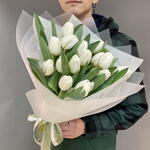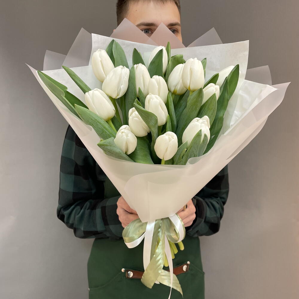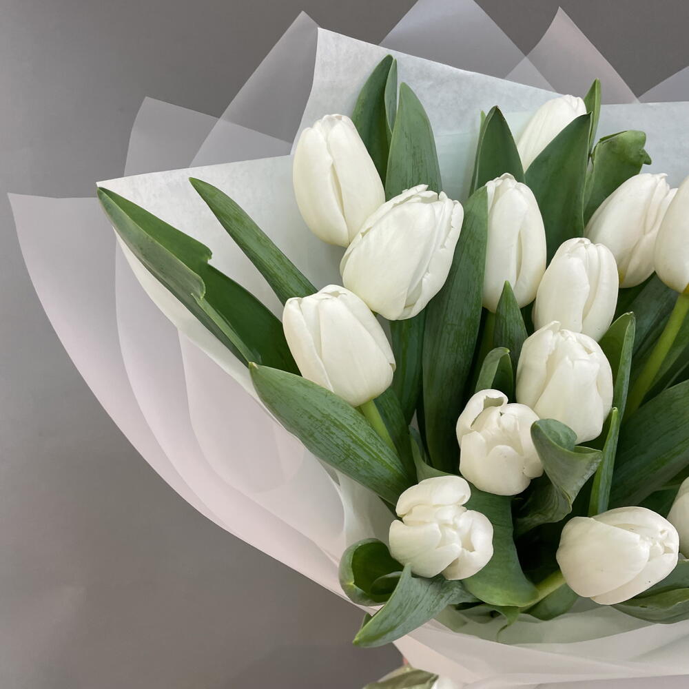 Нежный весенний букет из стойких белых тюльпанов подойдет в подарок на день рождения любимой жене или девушке или просто поднять настроение! Доставка цветов Вашим близким!