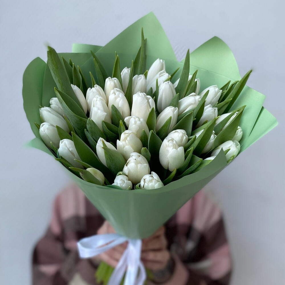 Тюльпан - 35 шт. Лента атласная - 1 шт. Упаковка дизайнерская - 3 шт.