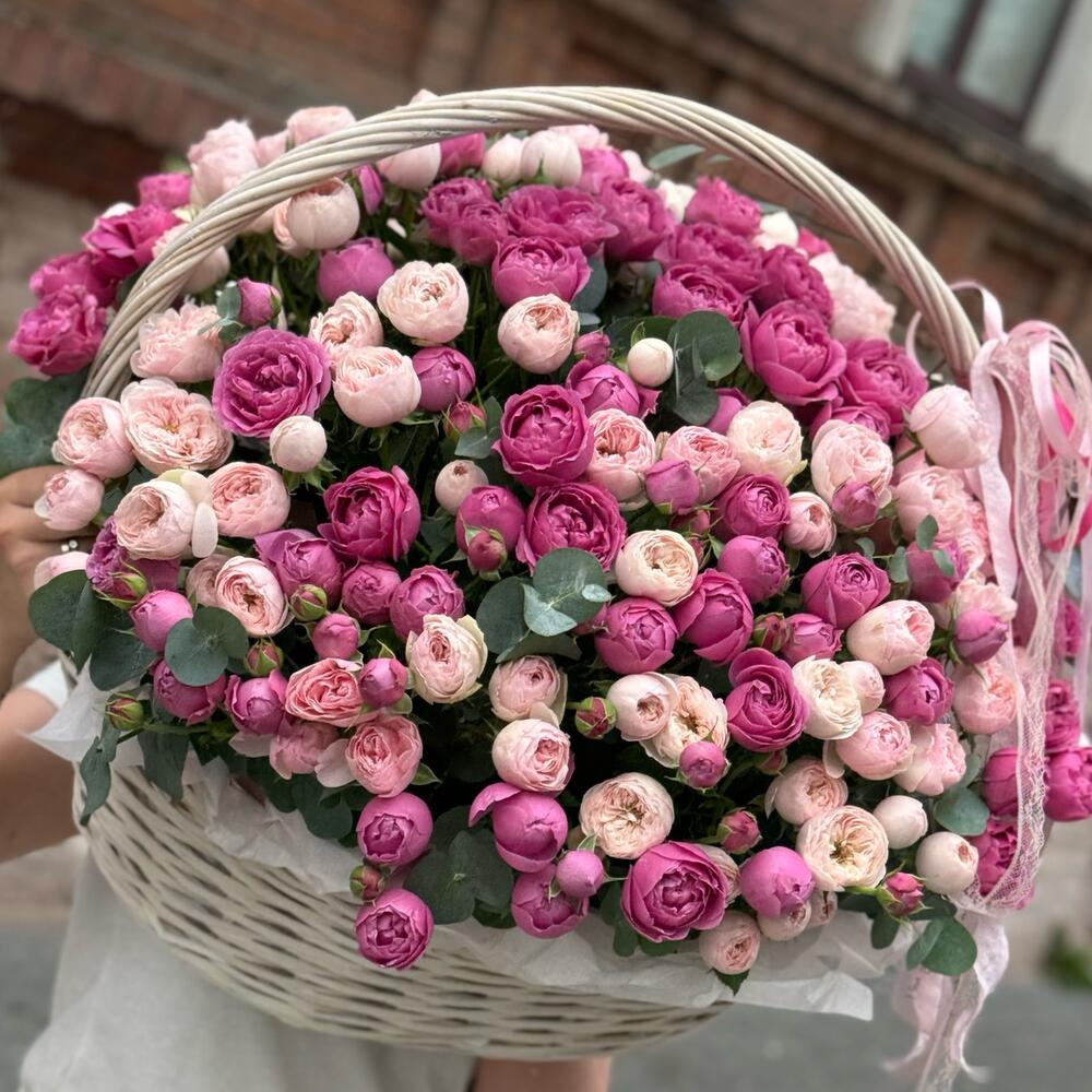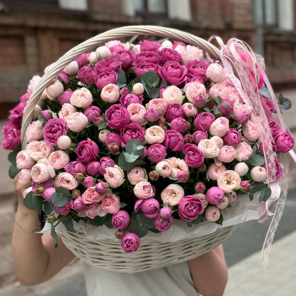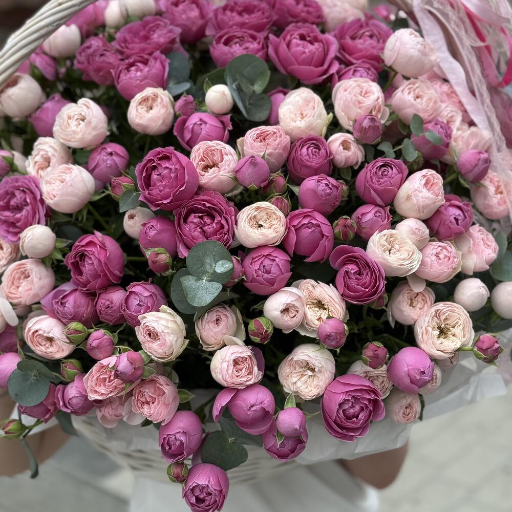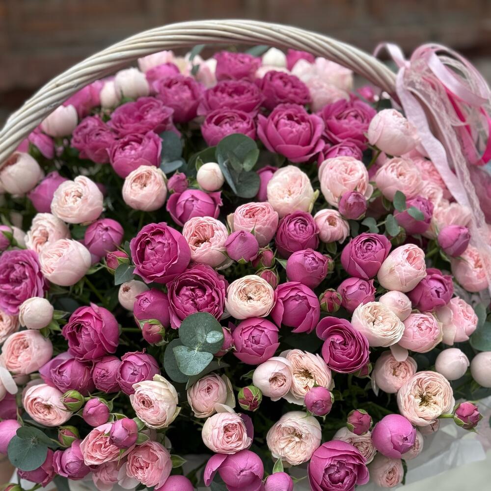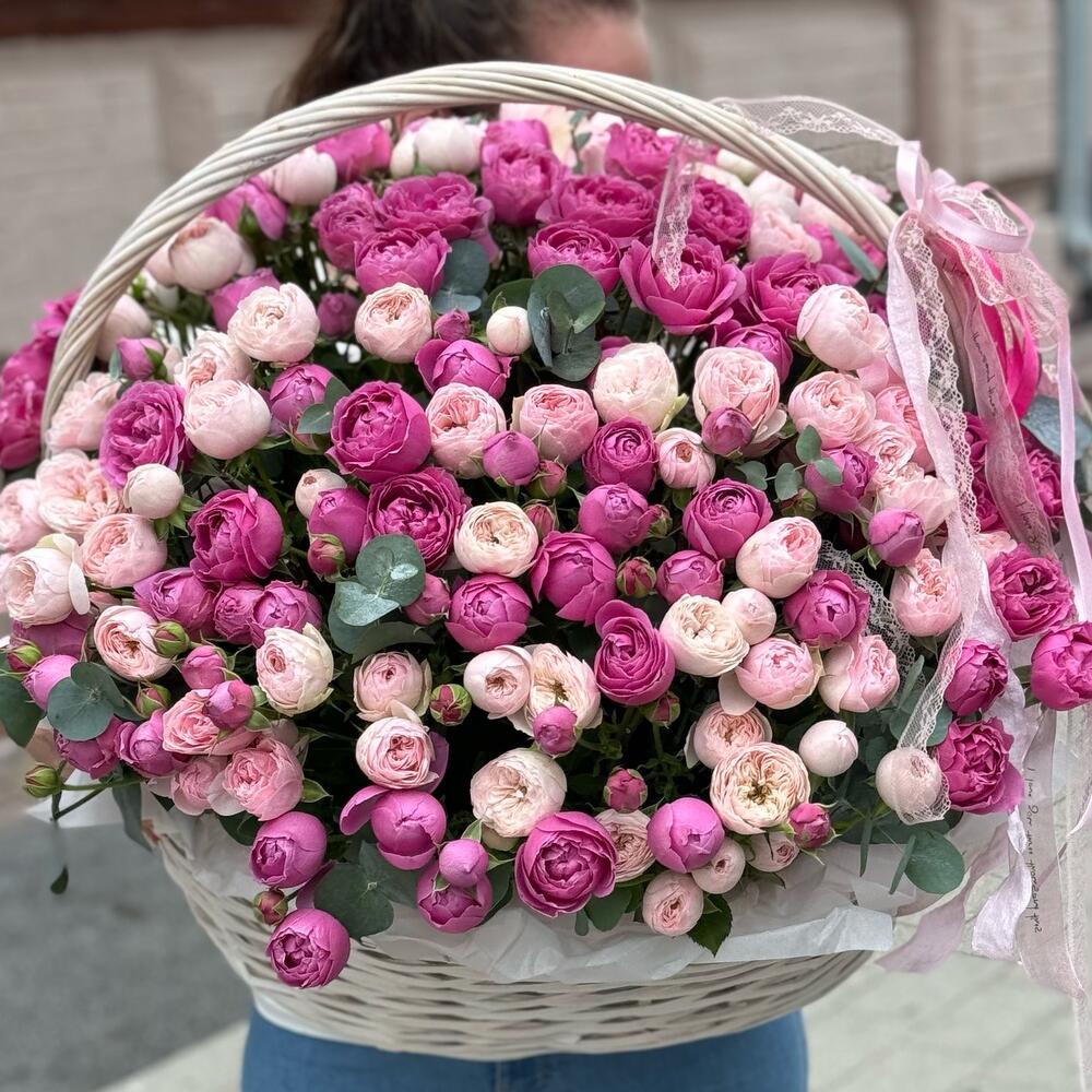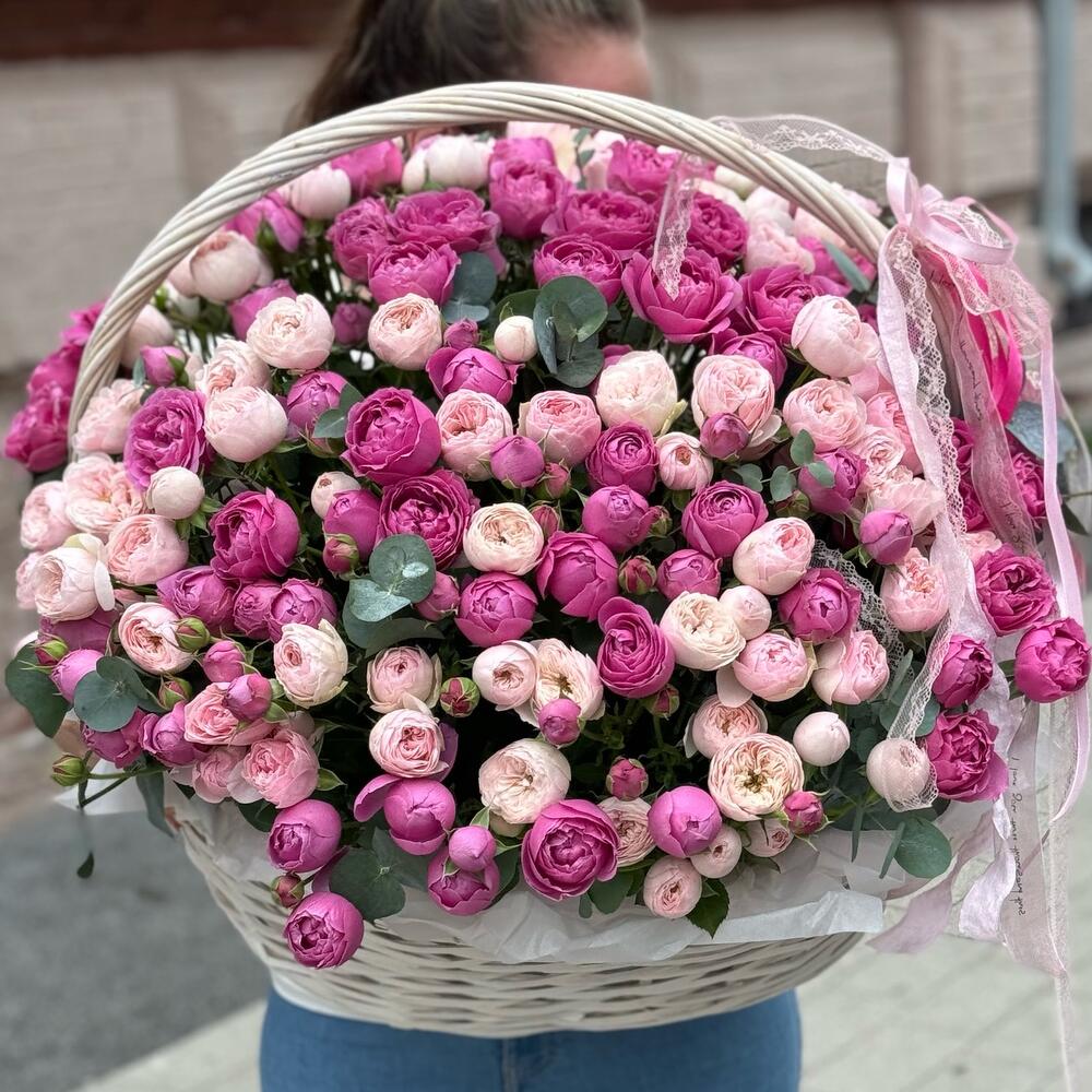 Большая корзина пионовидных роз