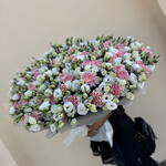 Эустома - 51 шт. Лента атласная - 1 шт. Диантус - 49 шт. Матовая упаковка - 9 шт.