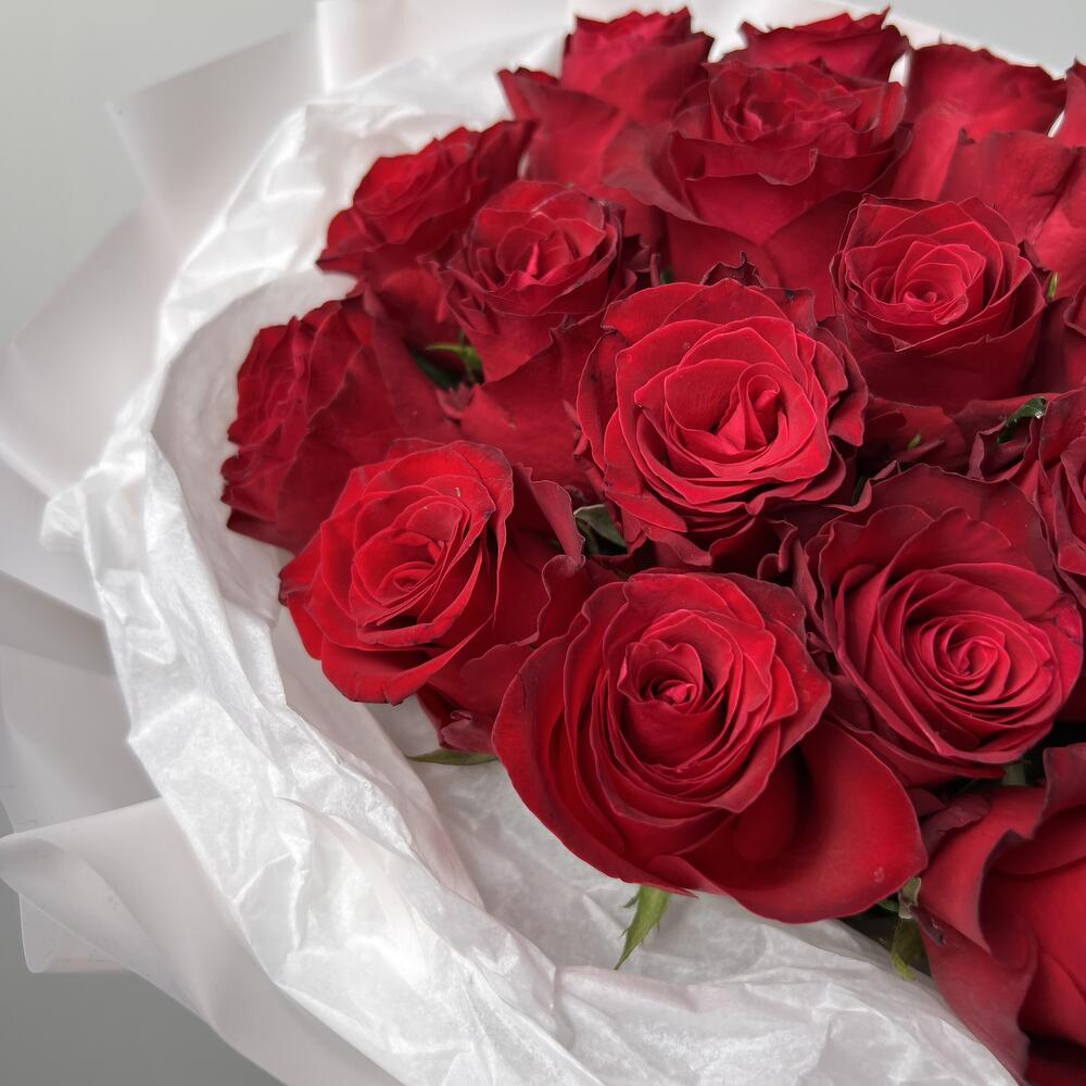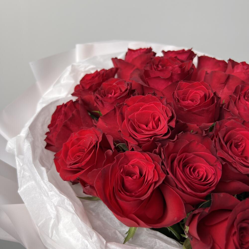 Упаковка - 1 шт. Роза Кенийская - 21 шт. Средство для продления жизни цветов - 1 шт. Инструкция по уходу - 1 шт.