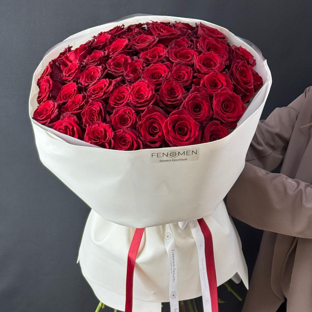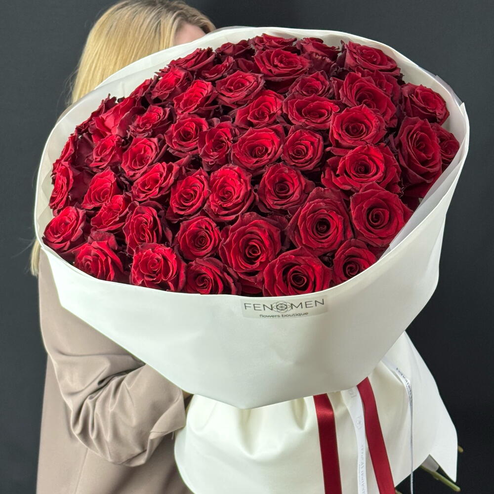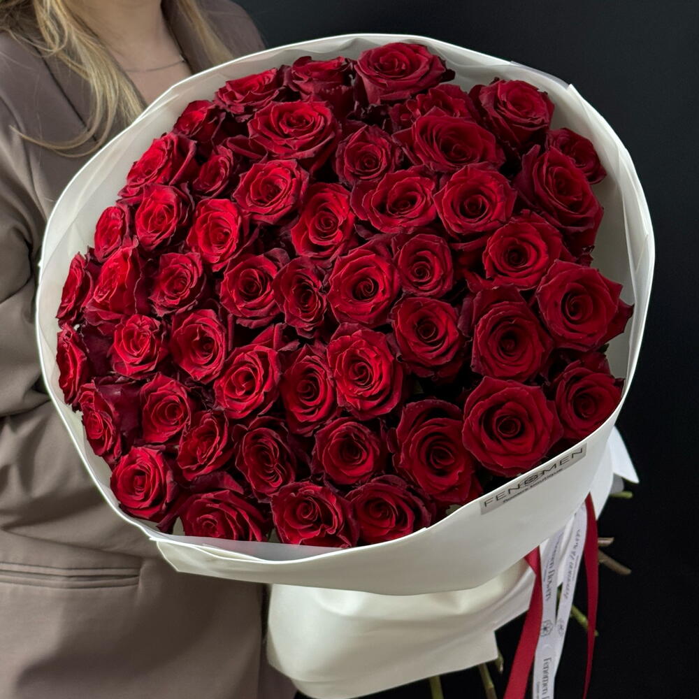Большой букет красный роз, 51 штук
