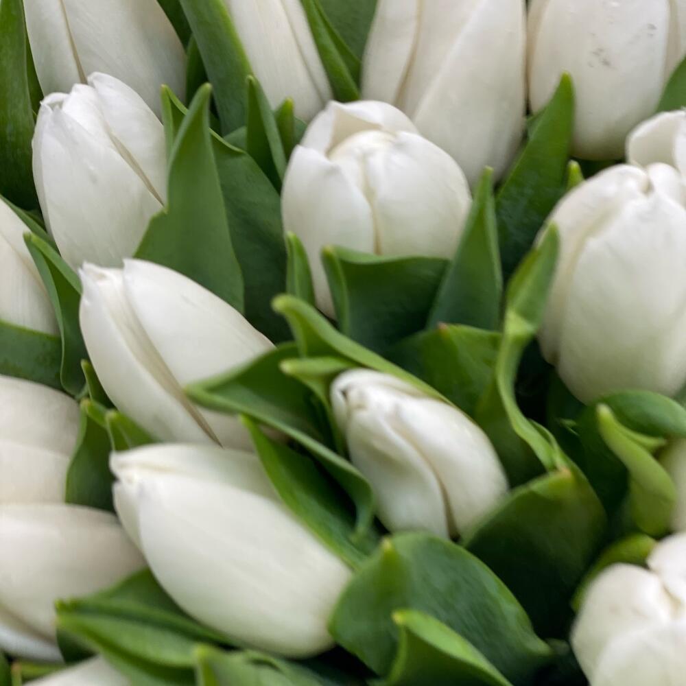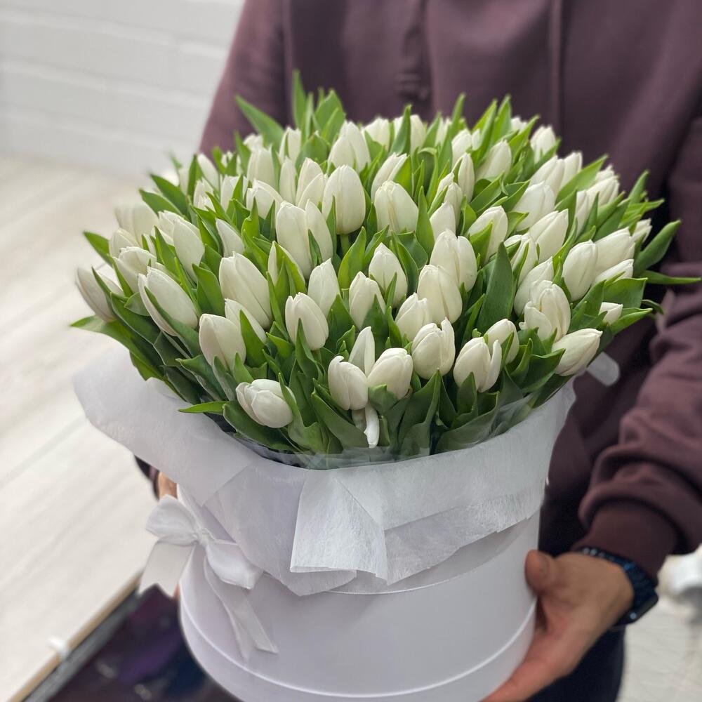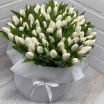 Букет 101 белый тюльпан в коробке