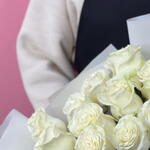 Букет белых роз в оформлении