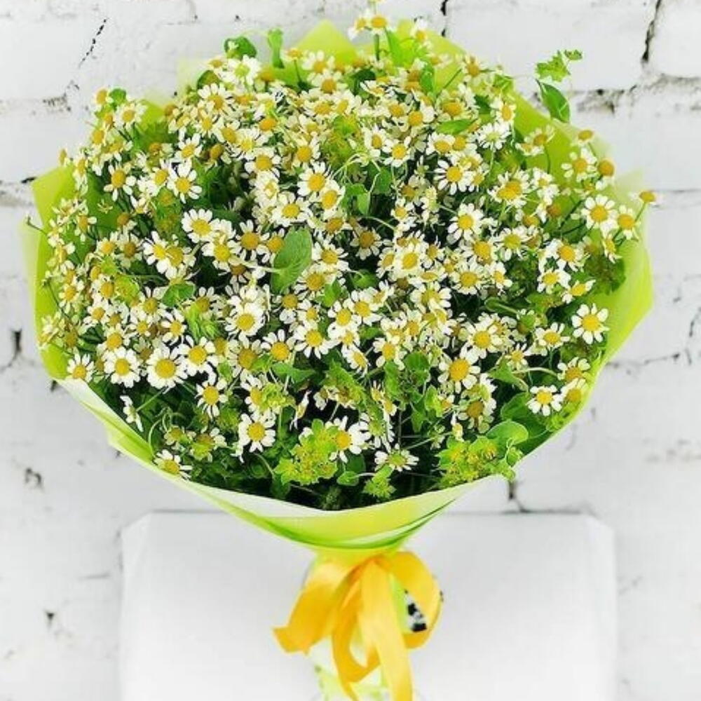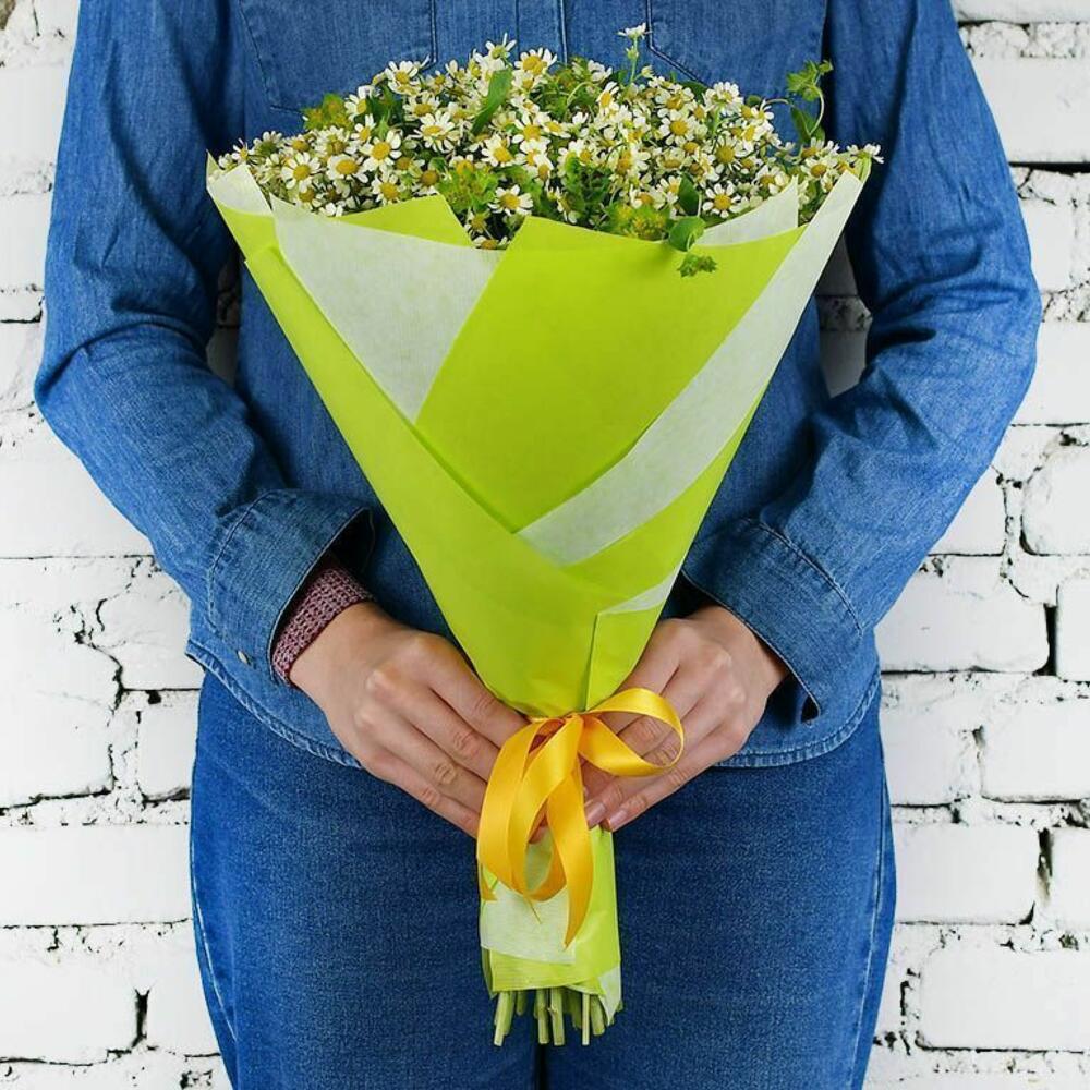 Буплерум - 4 шт. Лента - 1 шт. Ромашка танацетум - 11 шт. бумага крафт - 1 шт.
