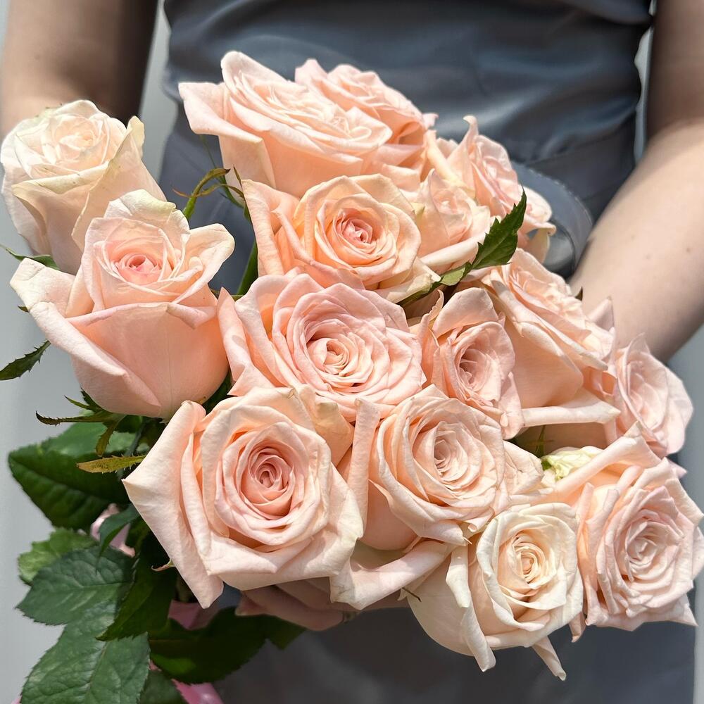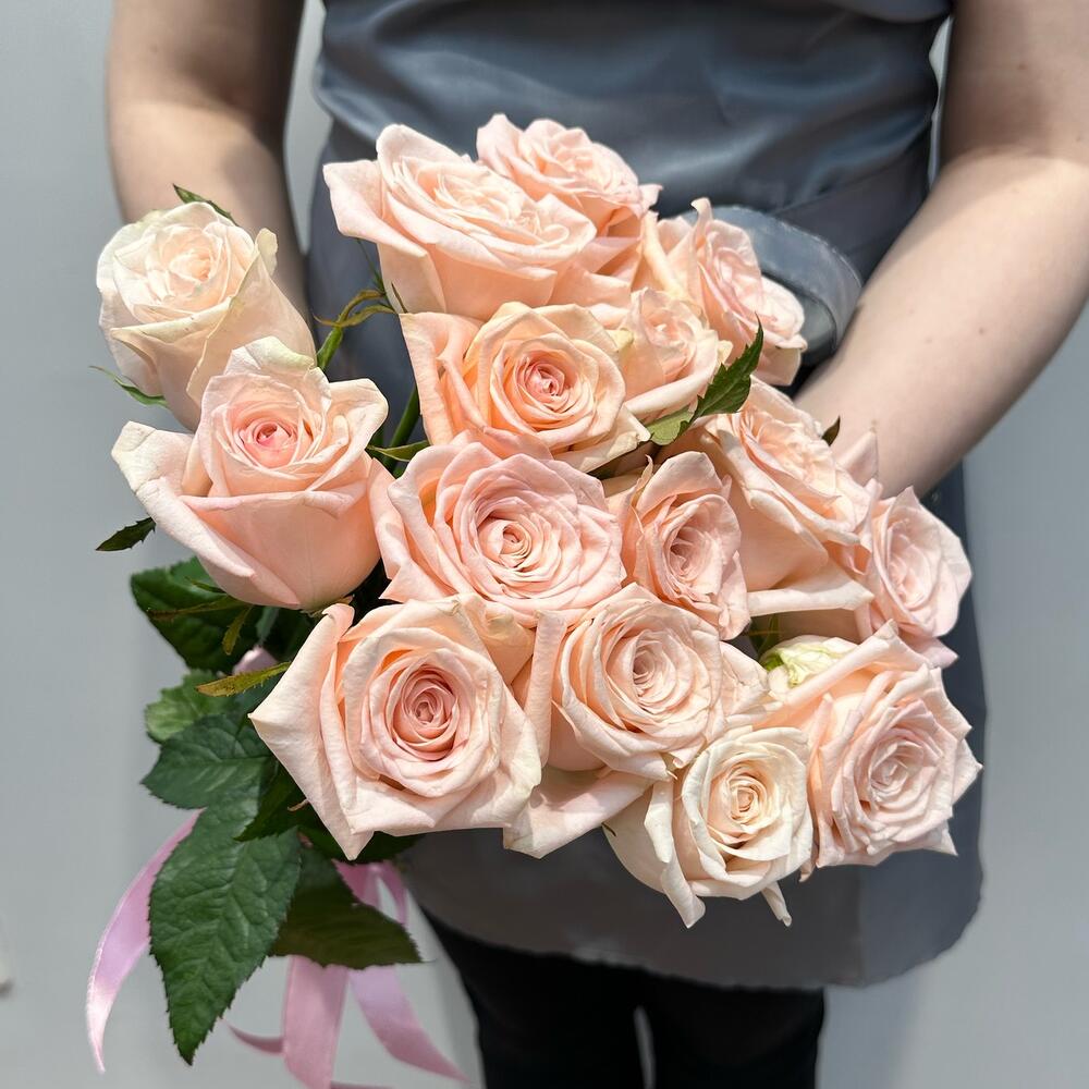 Этот утонченный букет из 15 нежно-розовых роз - это символ нежности, нежных чувств и взаимной любви.