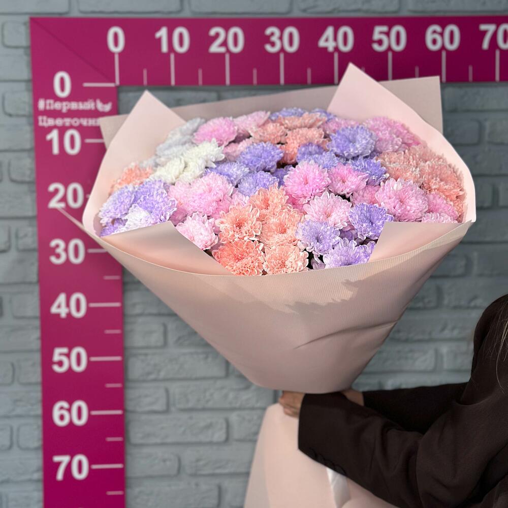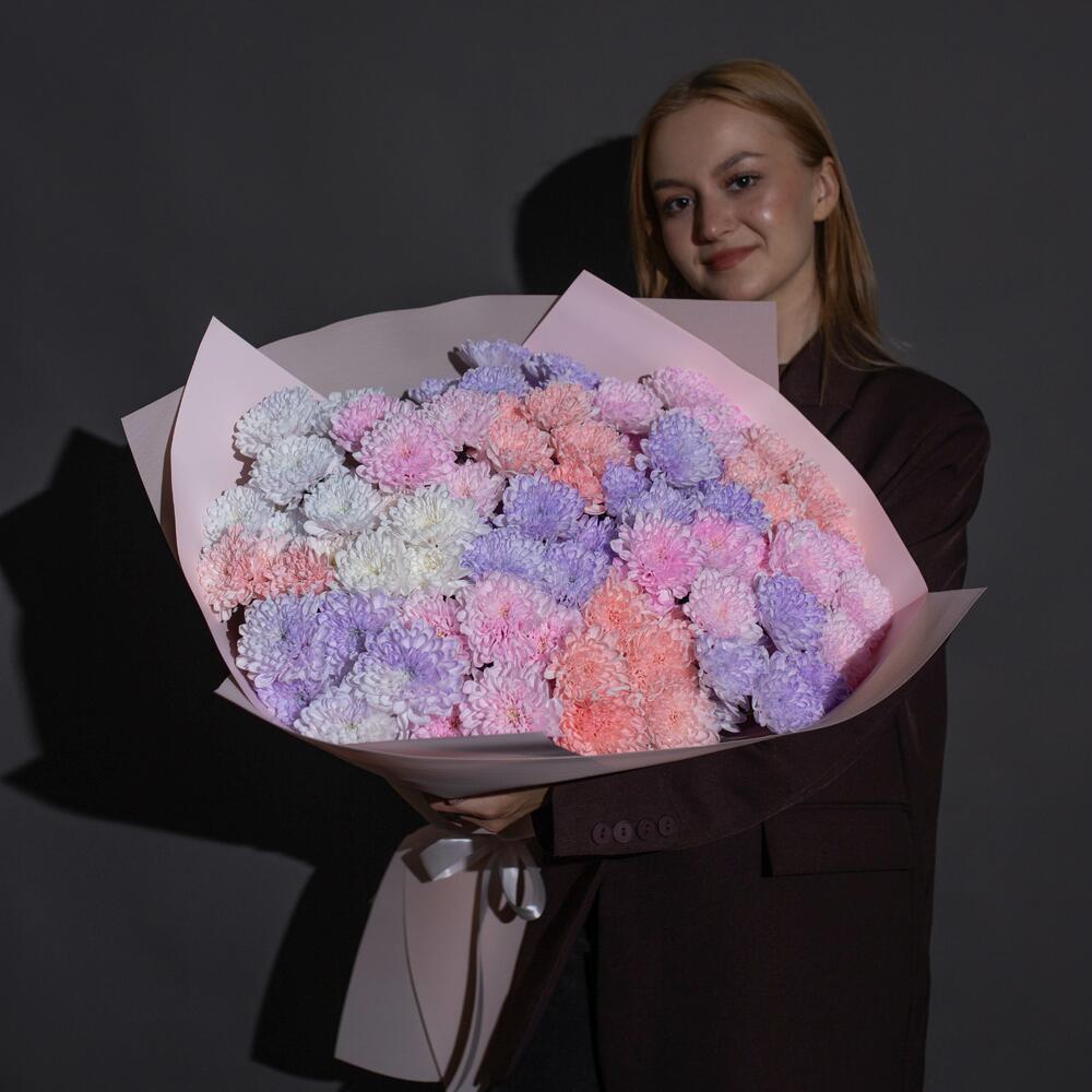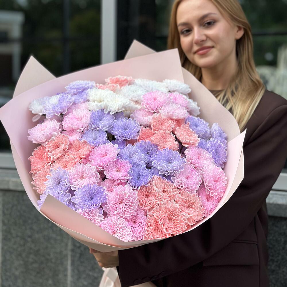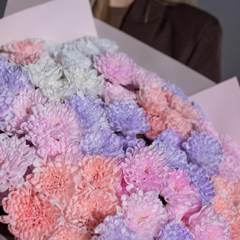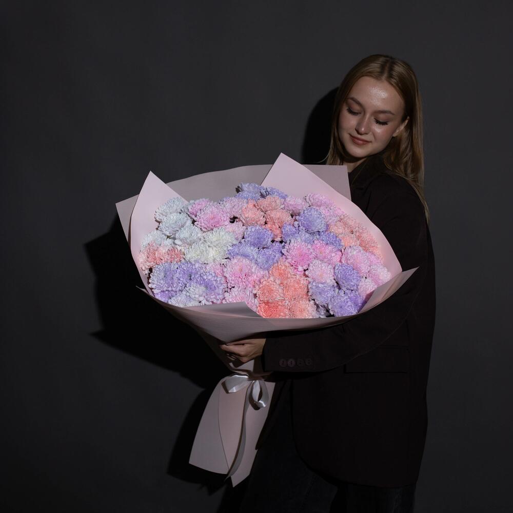 Нежный букет из пышных хризантем в пастельных тонах — сочетание розовых, сиреневых и белых оттенков создаёт ощущение лёгкости и утончённости. Такой букет станет идеальным подарком для выражения нежных чувств, благодарности или поздравления. Современная упаковка и гармоничная цветовая палитра делают композицию стильным акцентом любого праздника. 💐 Букет хризантем Гигант XS 🌿 Упакован в стильную обёртку и готов к вручению. 📦 Возможна доставка по городу.