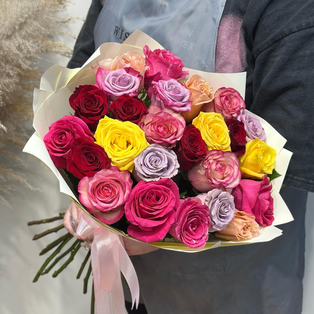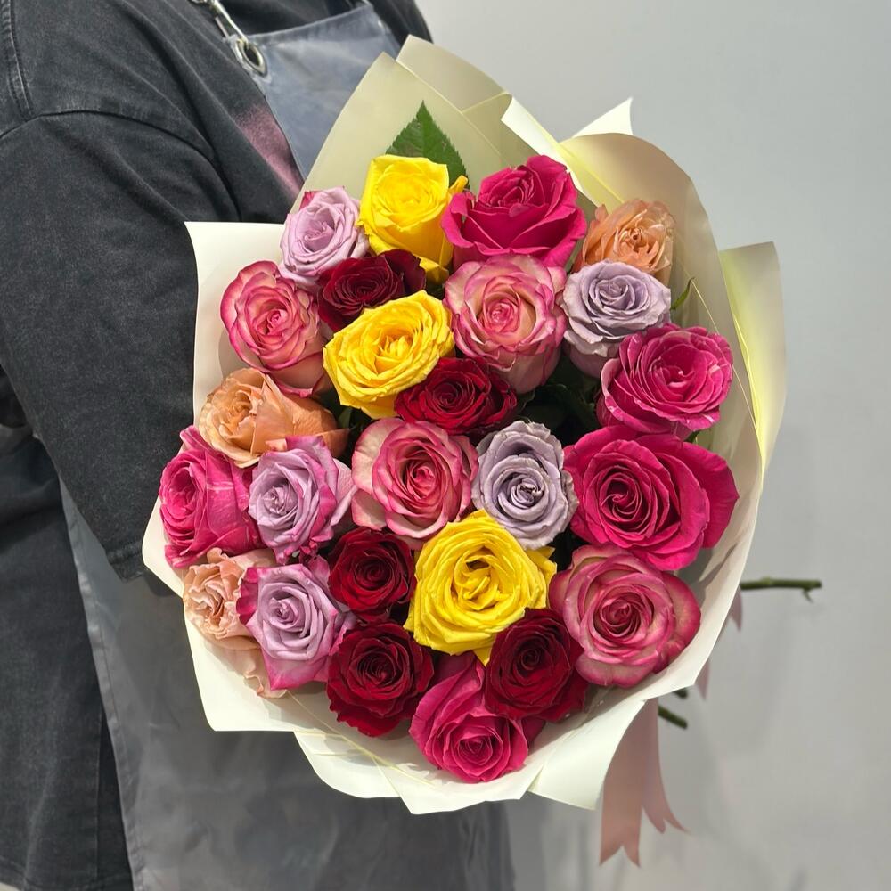 В букете используется от 3-х оттенков роз! Покупатель не может выбирать цвет! Подарите незабываемые эмоции с букетом из 25 эквадорских роз микс в Красноярске! Эти роскошные цветы обладают невероятной длиной стебля и яркими цветами, которые подчеркнут вашу искренность и нежность. Идеальный выбор для любого повода — будь то день рождения, юбилей или неожиданный сюрприз. Закажите уникальный букет у нас и позволите ему стать ярким акцентом вашего праздника! Доставка по Красноярску — быстро и удобно!