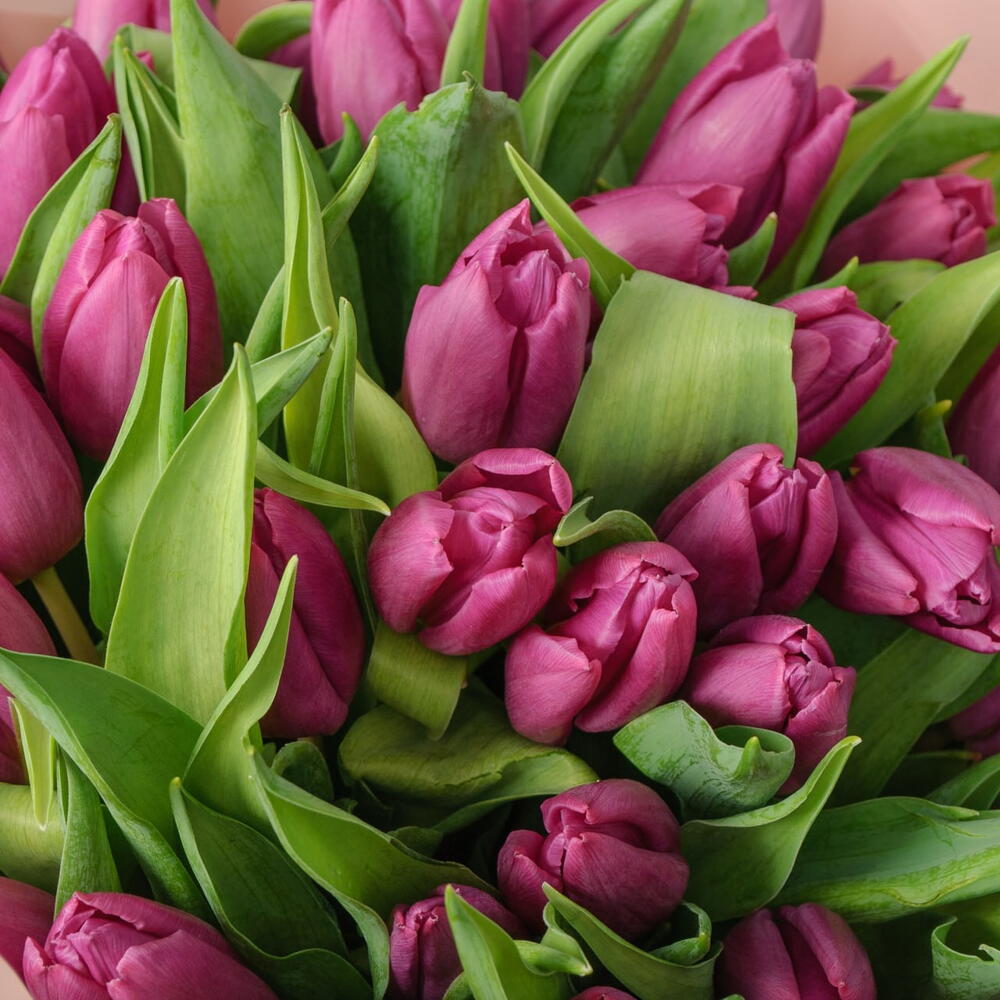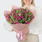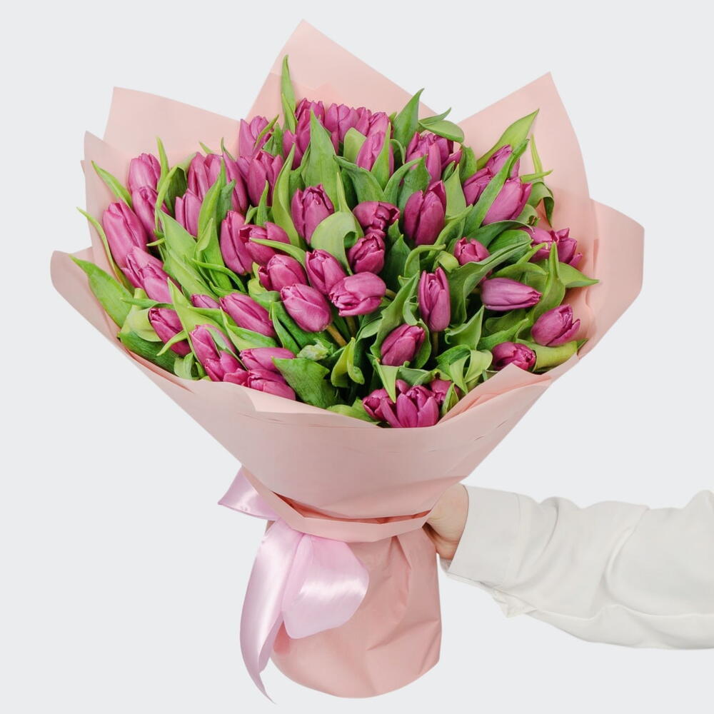 Тюльпан - 51 шт. Лента атласная - 1 шт. корейская дизайнерская упаковка - 1 шт.