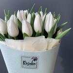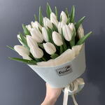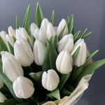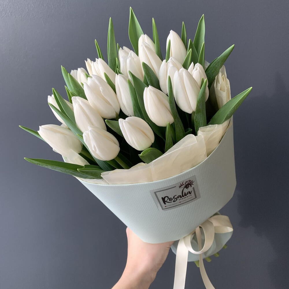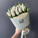 Монобукет из 21 шт белых тюльпанов с оформлением Доставляется в транспортировочной коробке Состав: упаковка пленка матовая, тюльпаны Ширина, см: 20 Длина, см: 20 Высота, см: 50 Вес: 0.9 кг..